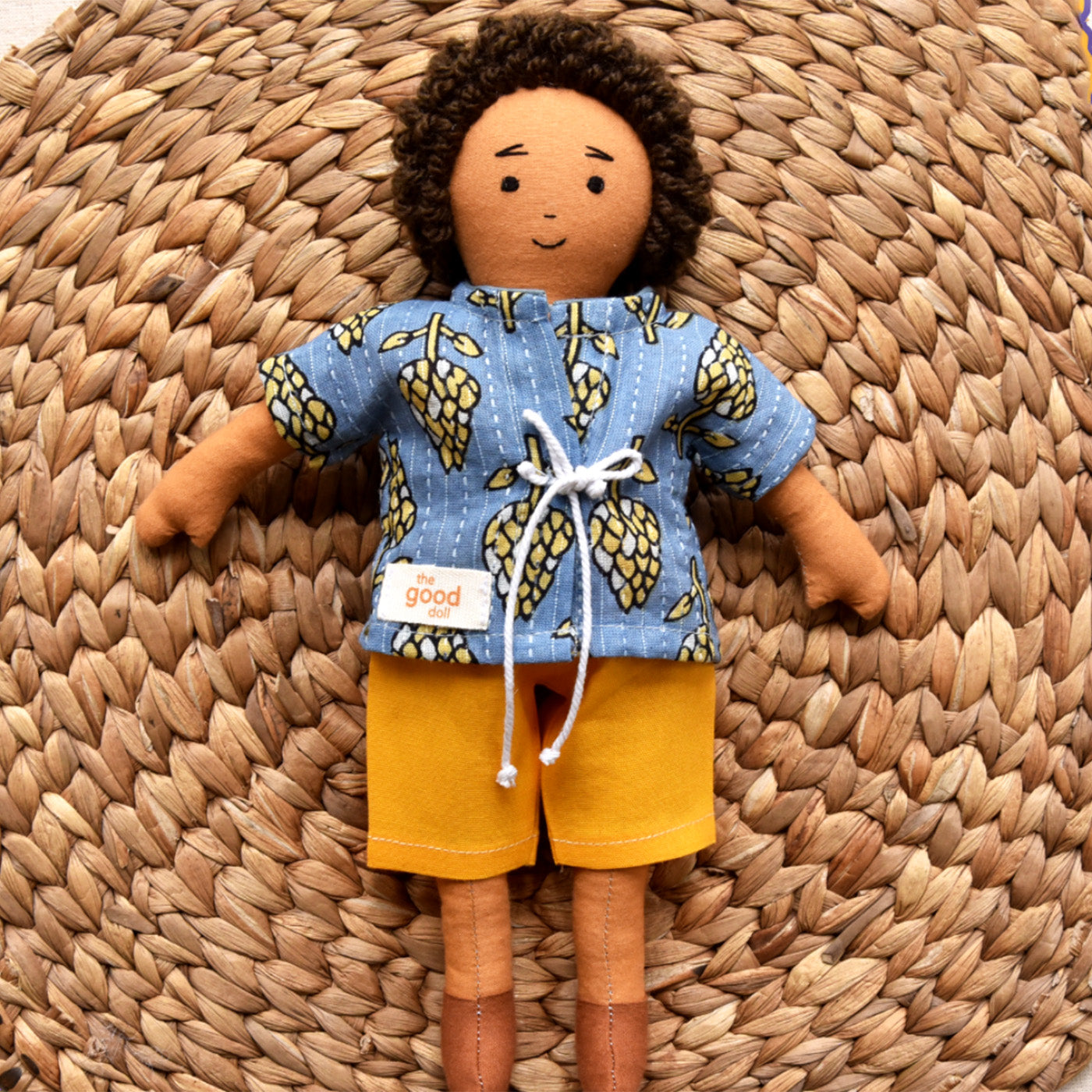 Nilah's (Younger Brother) Raagu In Blue Shirt | Soft Hand-Stitched Sustainable Indian Play Doll