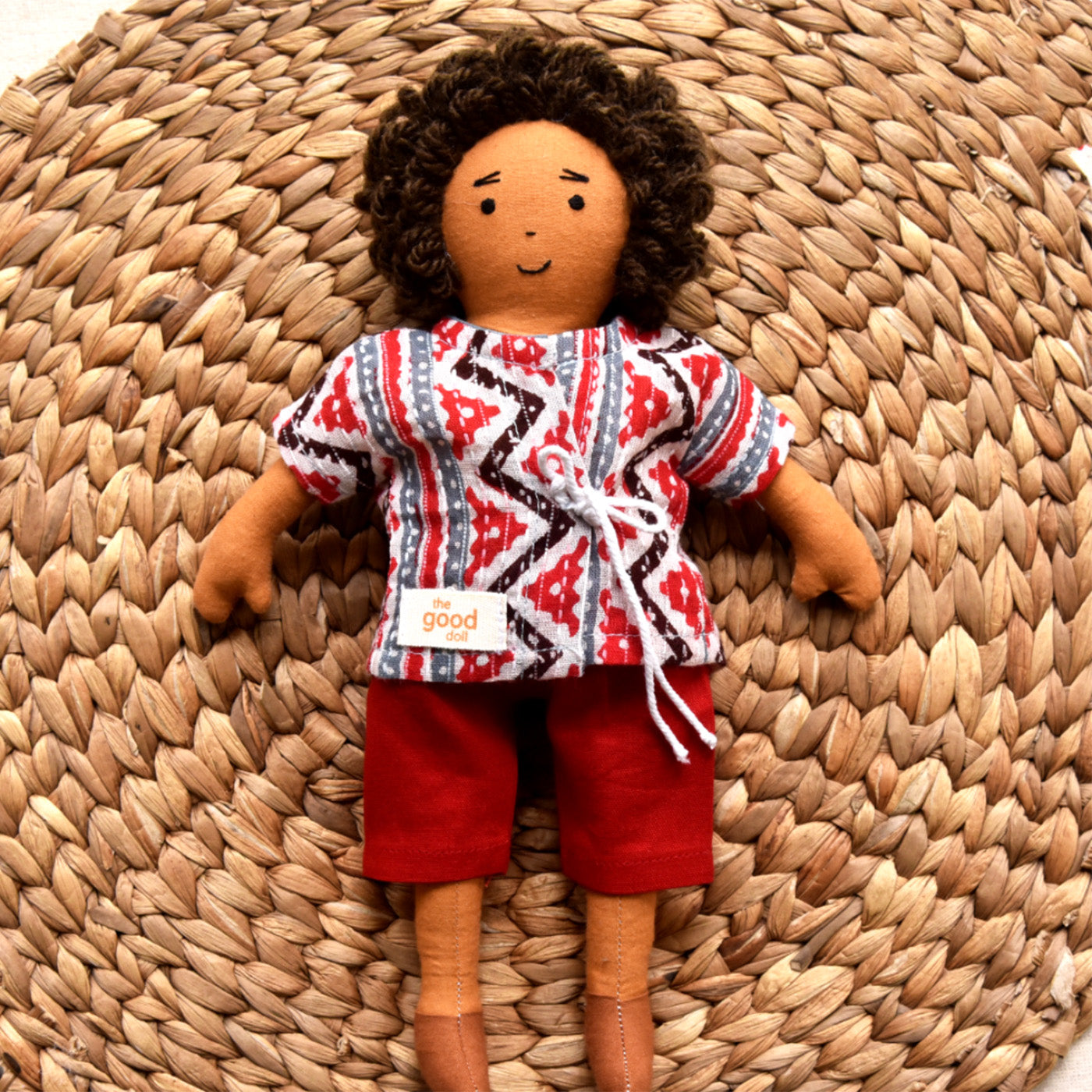 Nilah's (Younger Brother) Raagu In Red Shirt & Pant | Soft Hand-Stitched Sustainable Indian Play Doll