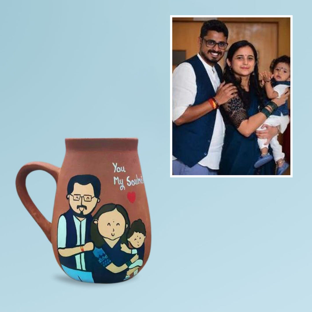 Family Love | Personalised Terracotta Mugs with Photo Based Caricature