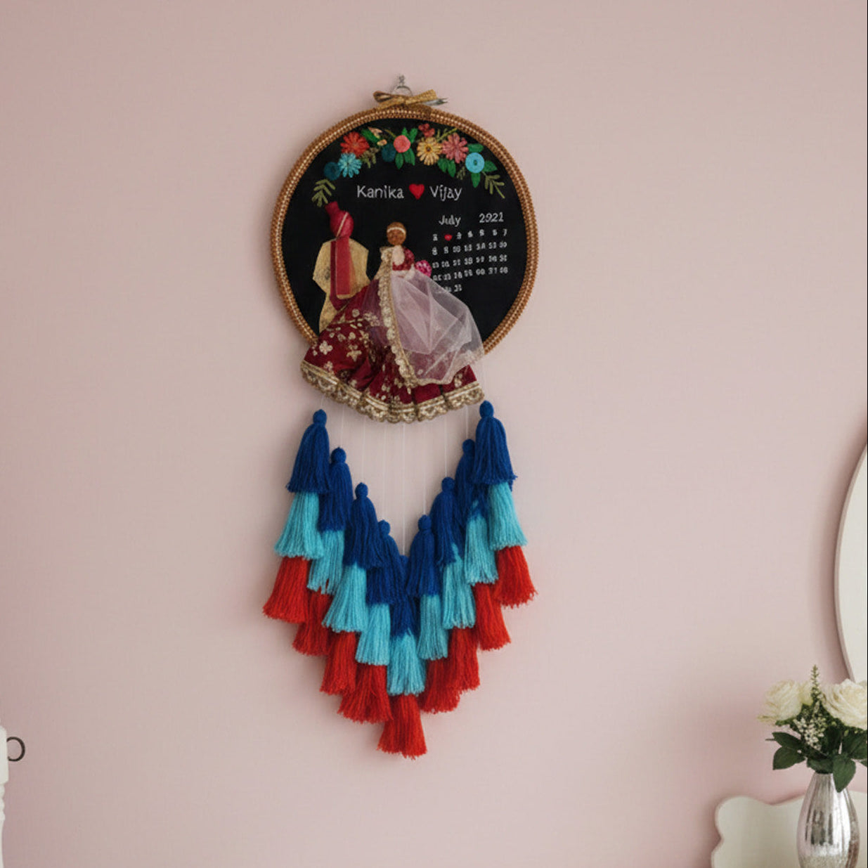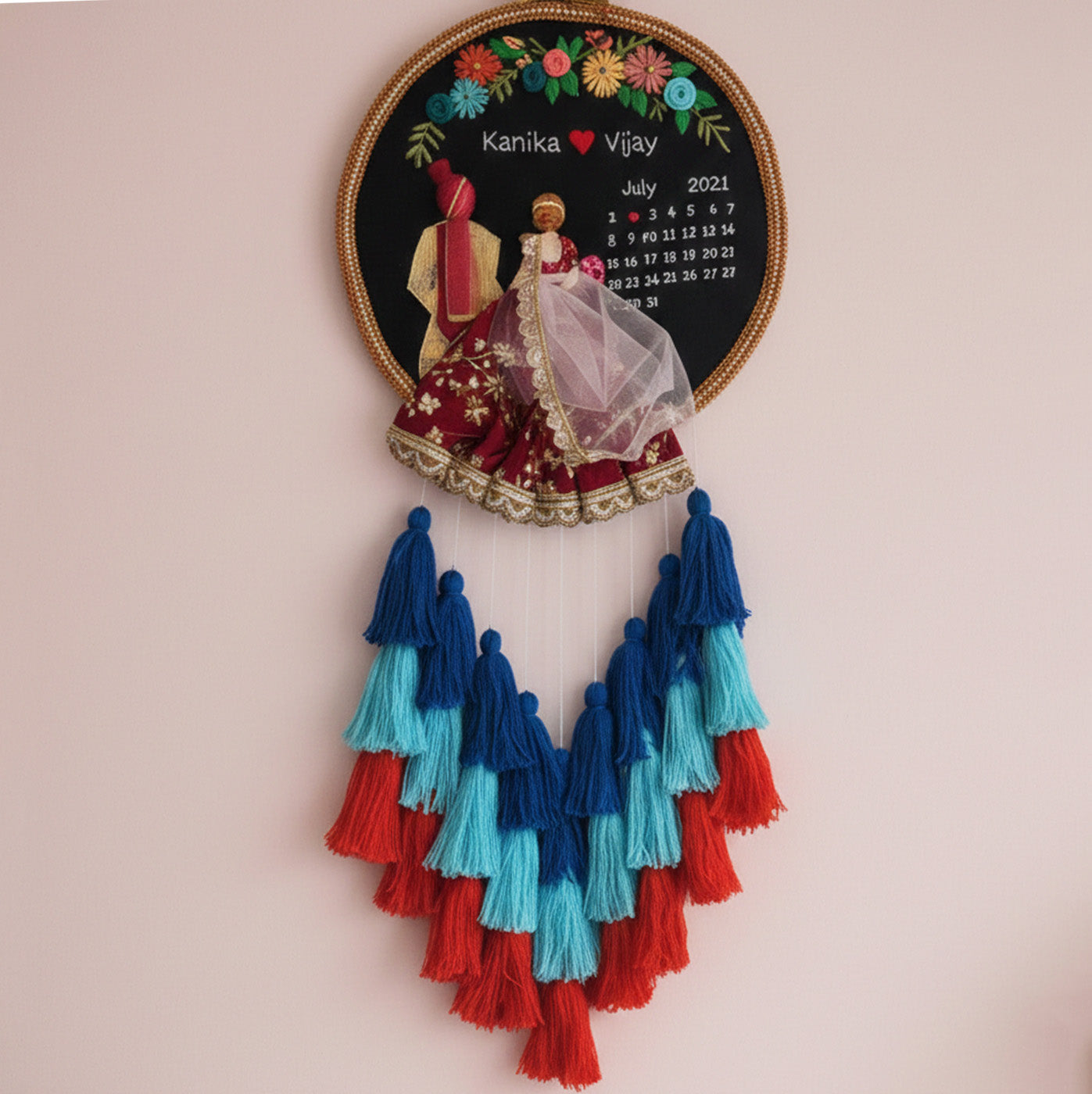 Personalized Embroidered Floral Wedding Plaque With Tassels