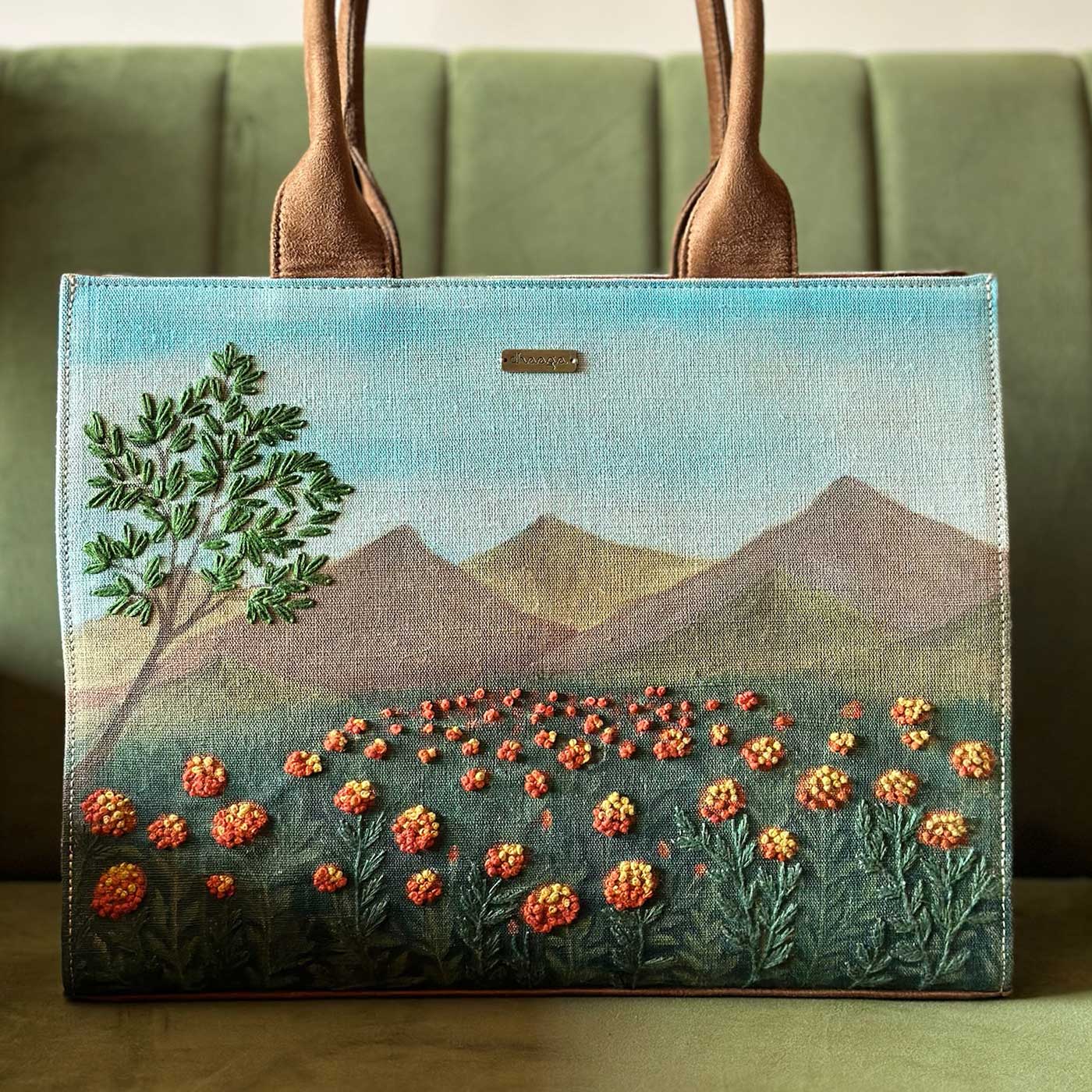 - Personalized Hand-Painted & Embroidered Marigold Tote Bag combines artistic craftsmanship with thoughtful everyday functionality, creating a piece that feels both expressive and timeless.