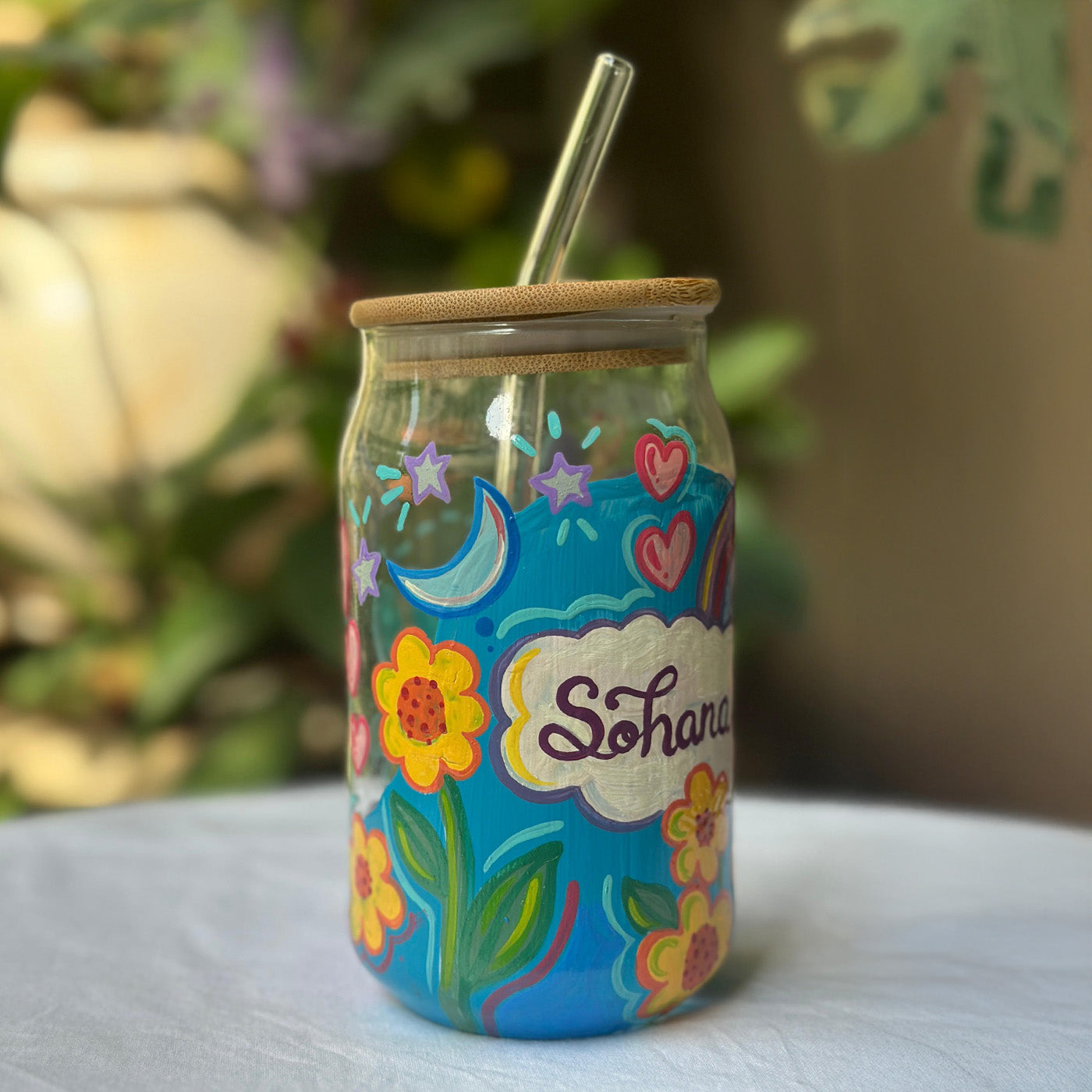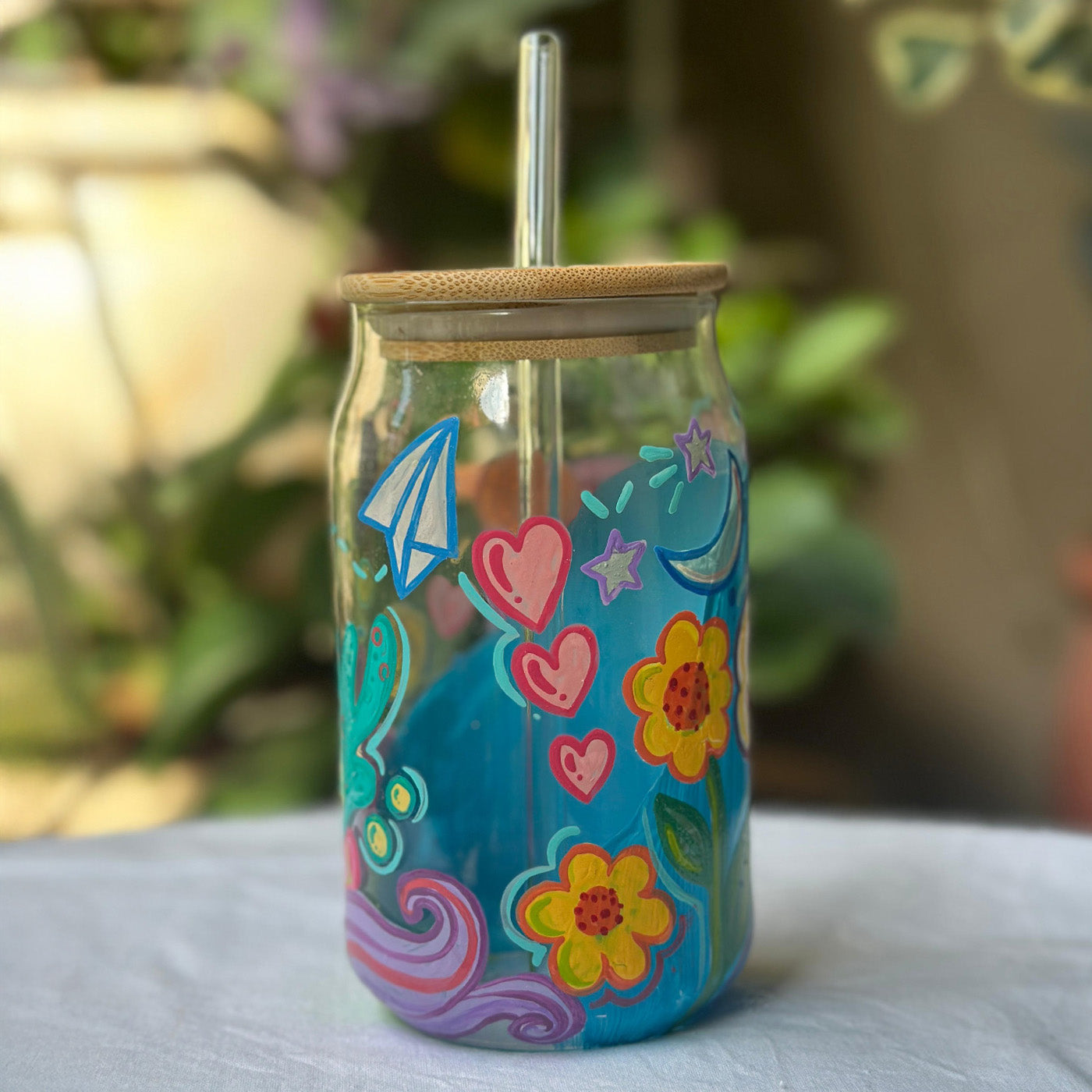 - Each tumbler is hand-painted using vibrant oil paints, ensuring a lively, artisanal finish.