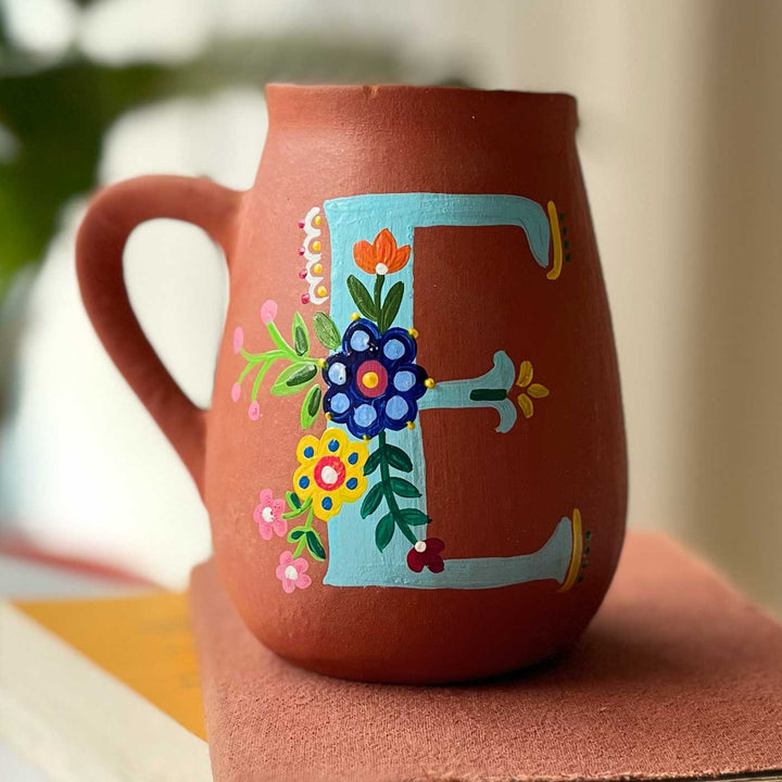 Personalized Hand-painted Floral Theme Monogram Terracotta Mug - E