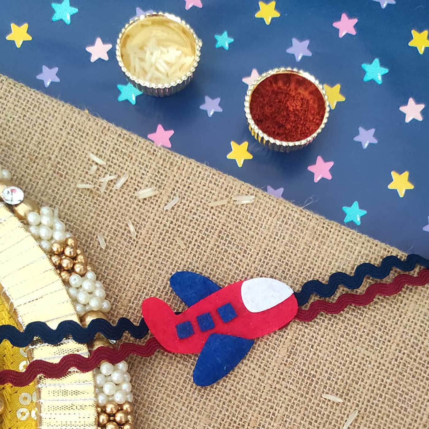 Personalized Handmade Aeroplane Theme Felt Kids Rakhi & Photo Frame Co