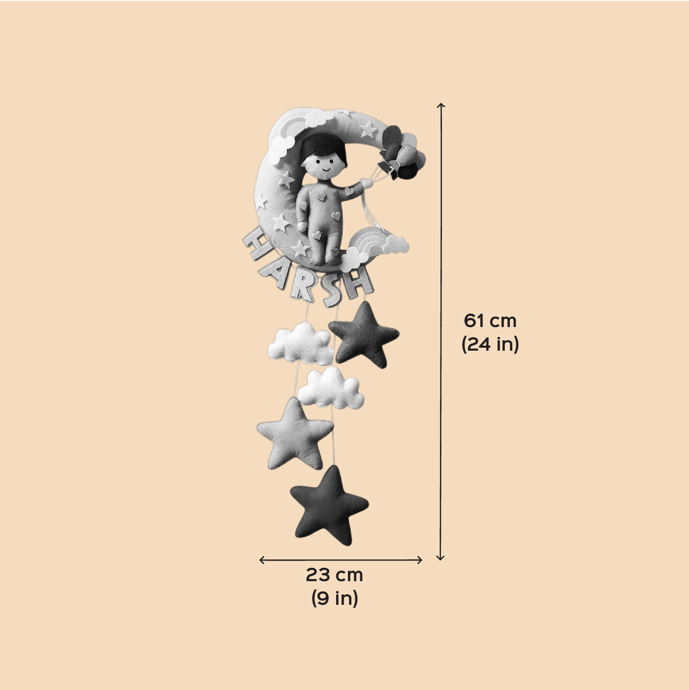 - Featuring a charming “Boy on the Moon” design, it brings stars, clouds, and playful elements to life.