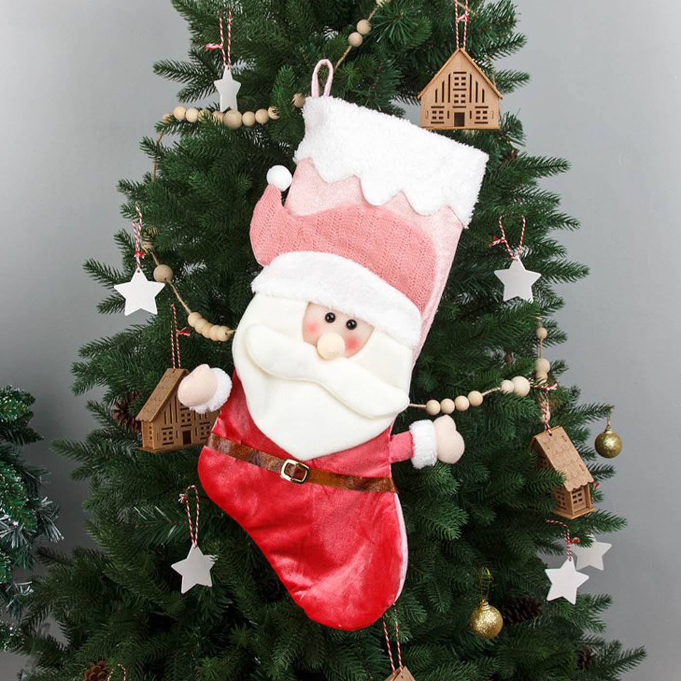 - Add festive cheer to your home with this Candy Blush Stocking featuring a jolly Santa motif.