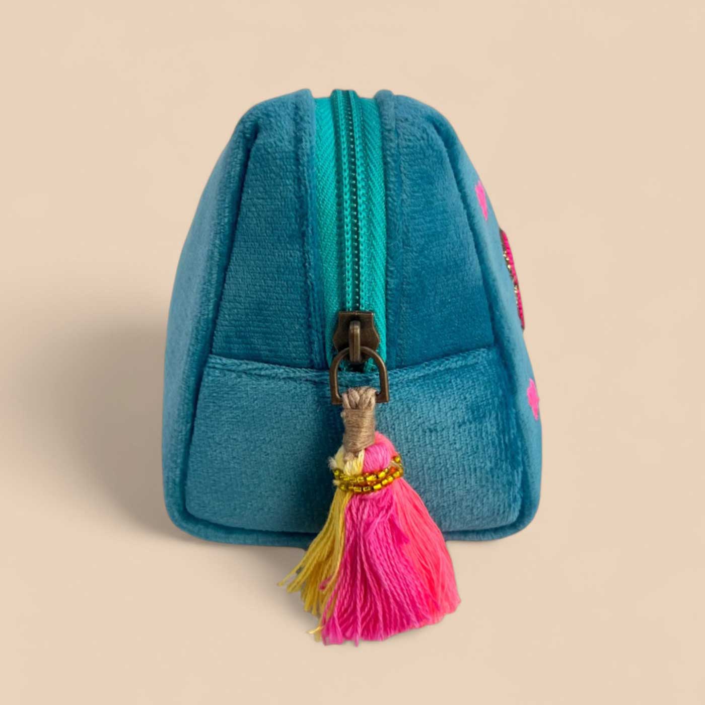 - This pouch is crafted from soft velvet with faux leather fittings for a refined, luxurious feel.