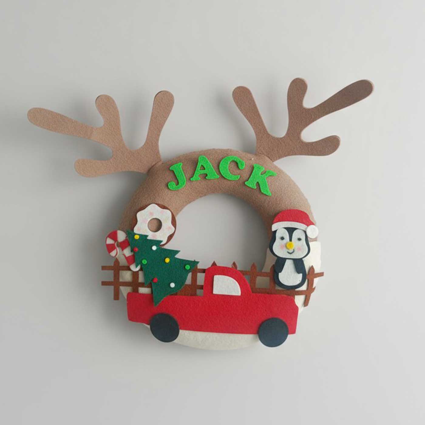- Celebrate the season of joy with this charming handcrafted name wreath.