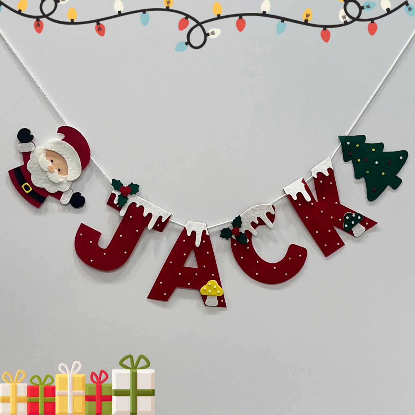 - Add a sprinkle of Christmas joy with this personalized felt name bunting.