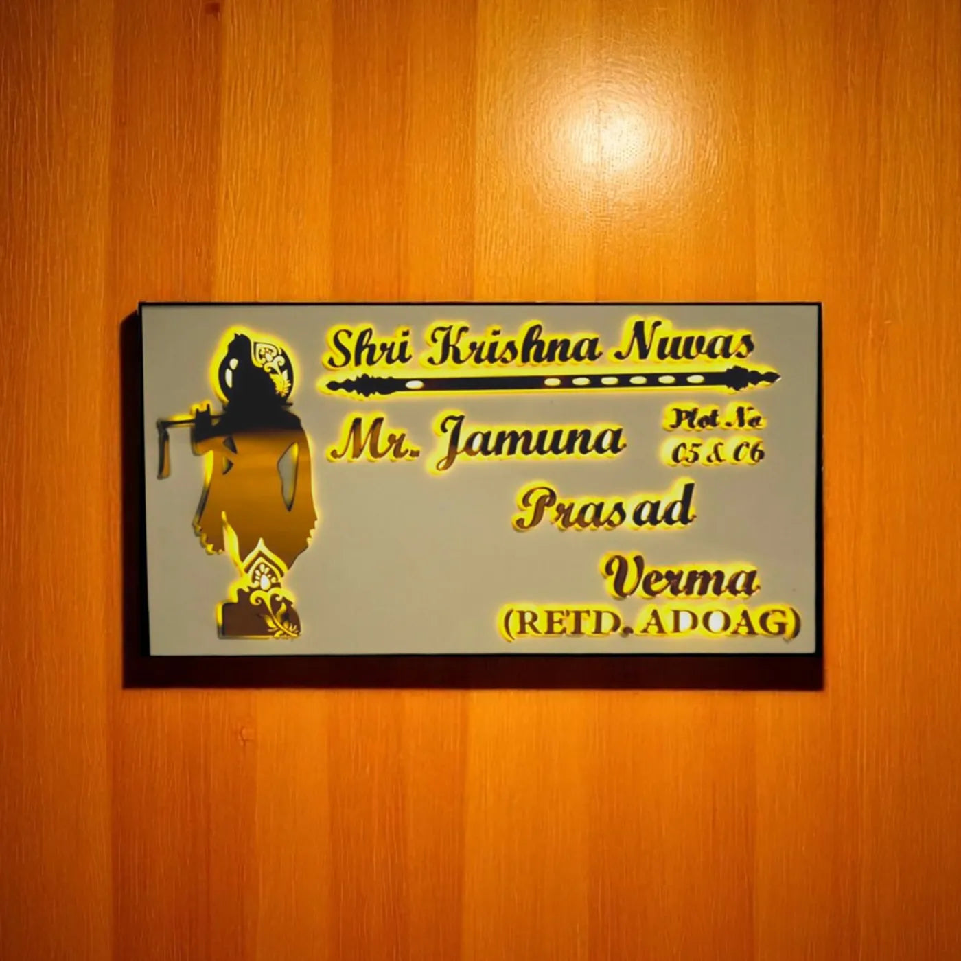 Personalized Krishna Theme Acrylic Name Plate With Lights