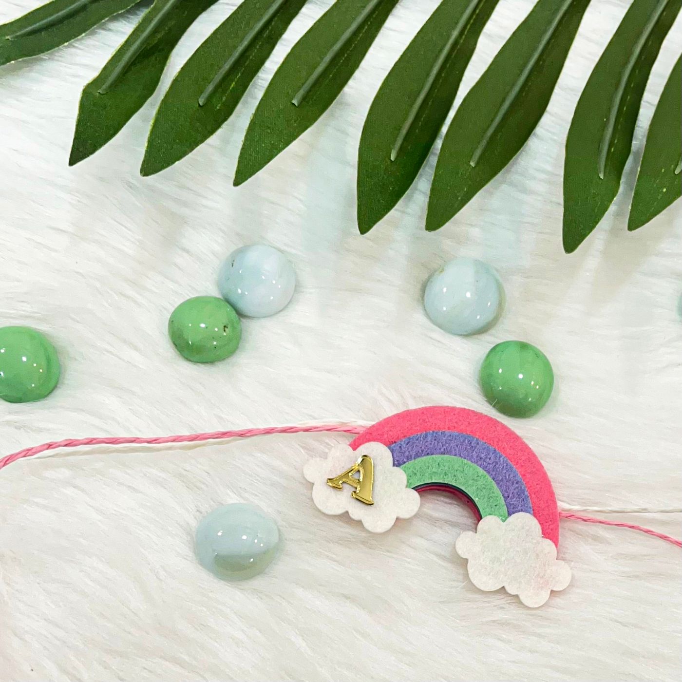Personalized Laser Cut Rainbow Shape Felt Kids Rakhi With Initial