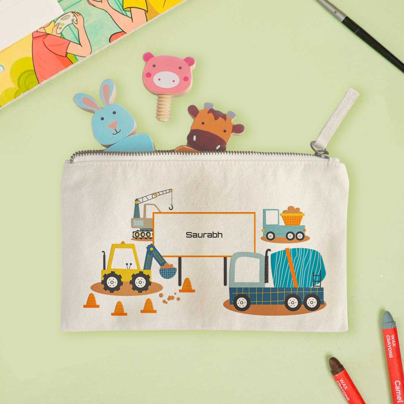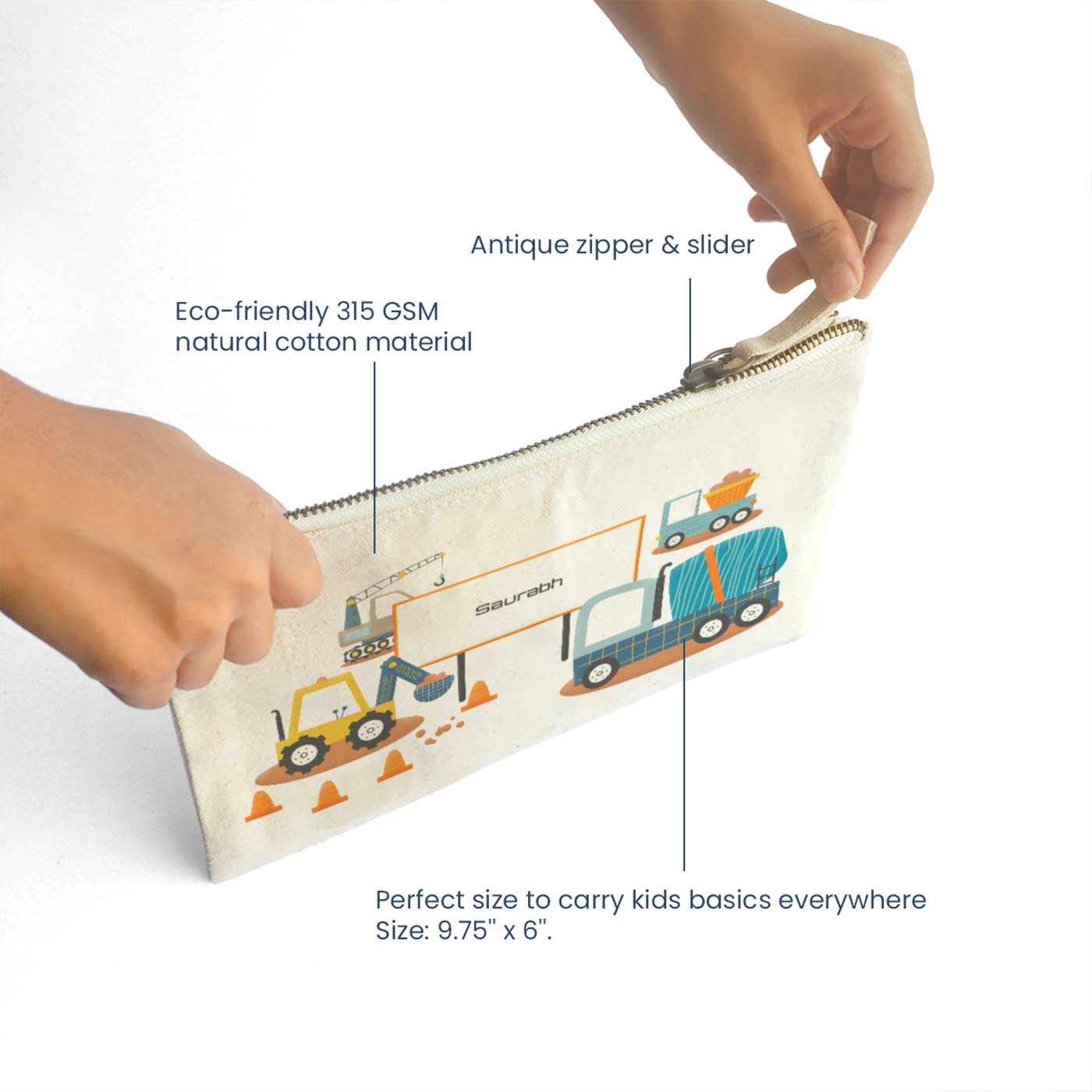 • Choose from a variety of themes and designs to customize the pouch, making it as unique as your child.