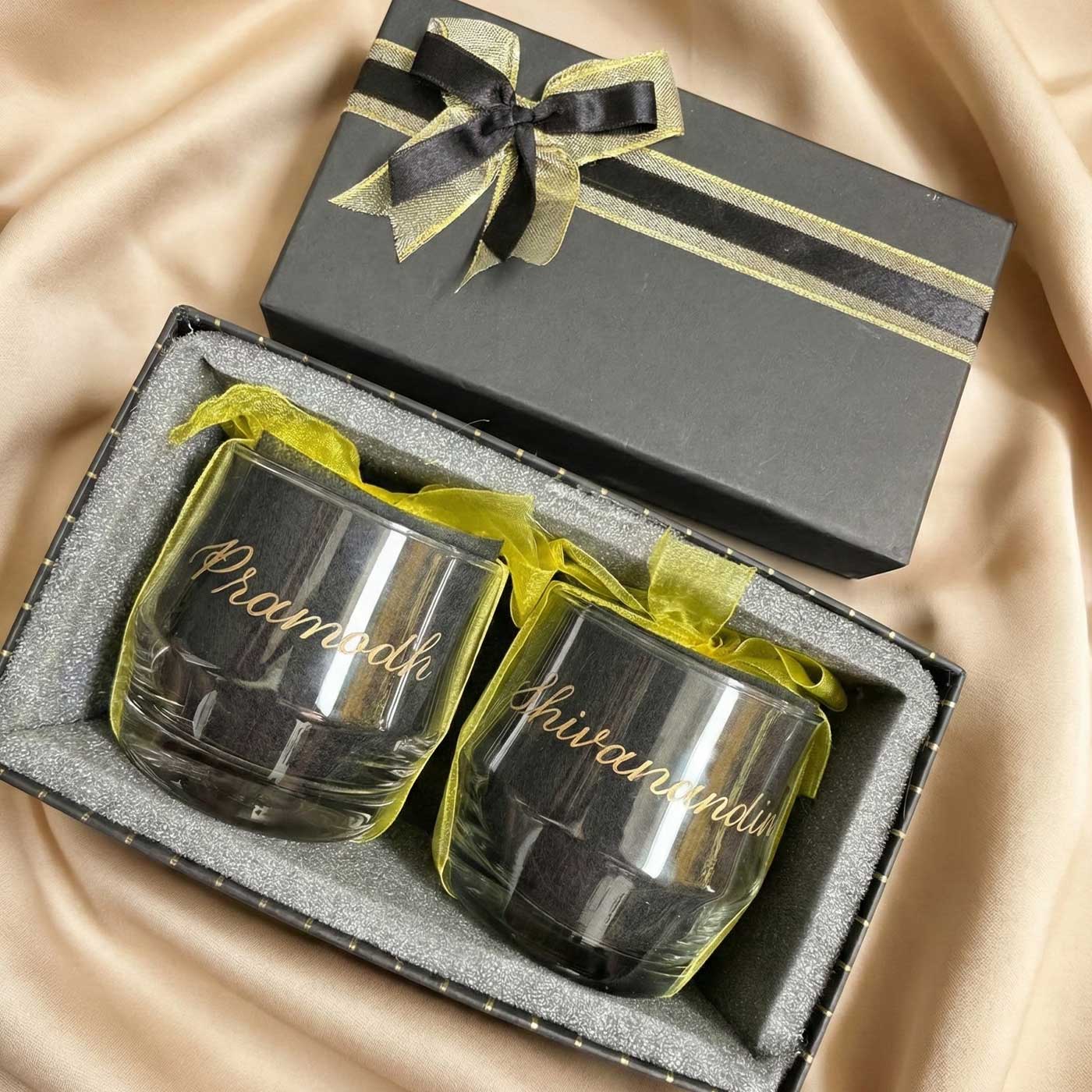 - These glasses are permantently engraved with your name in pretty golden calligraphy lettering, adding to its elegance.