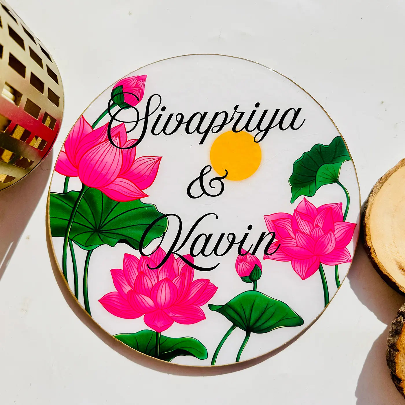 Personalized Round Lotus Theme Resin Name Plate