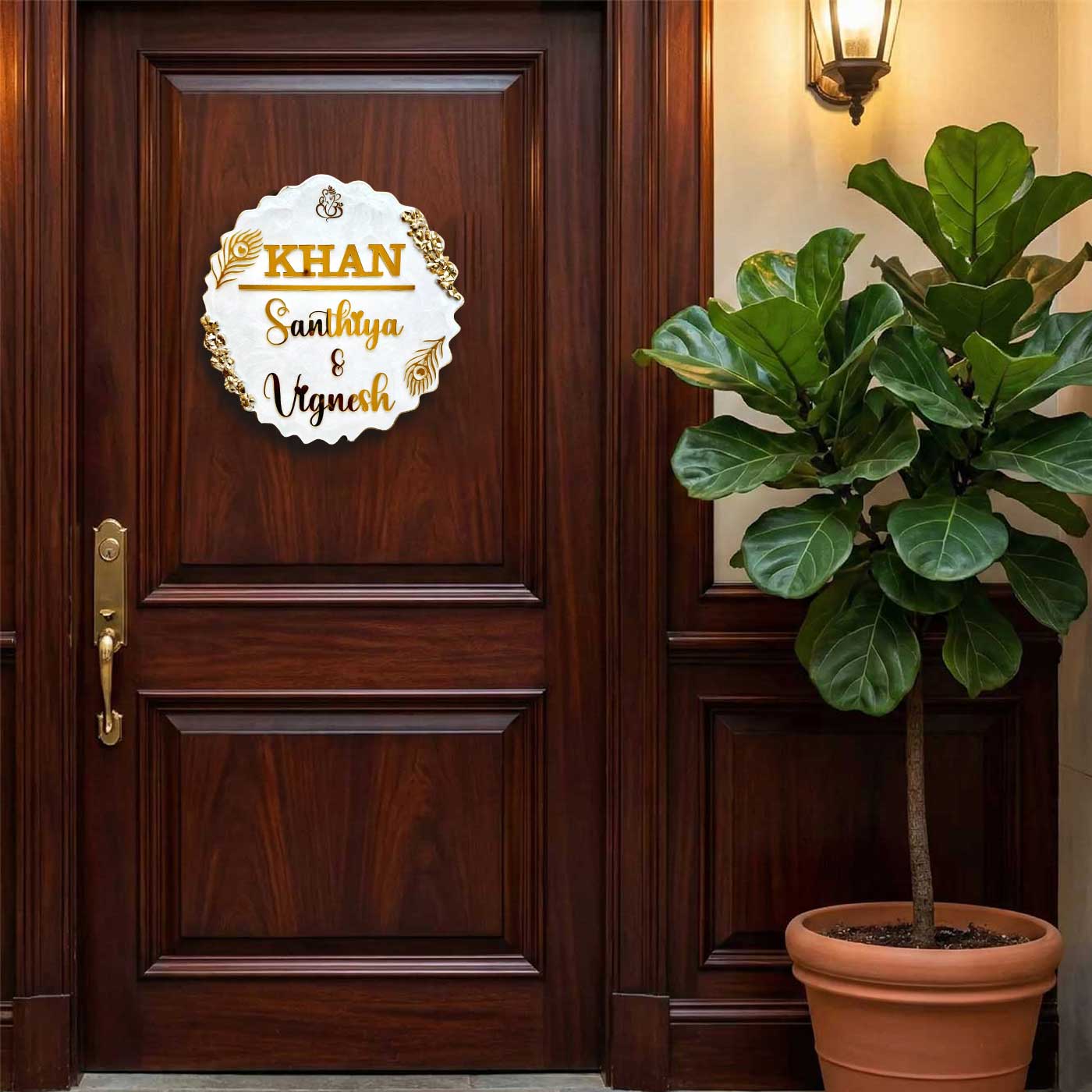 - Add a refreshing touch of nature to your entrance with this blue leaf-shaped resin name plate.