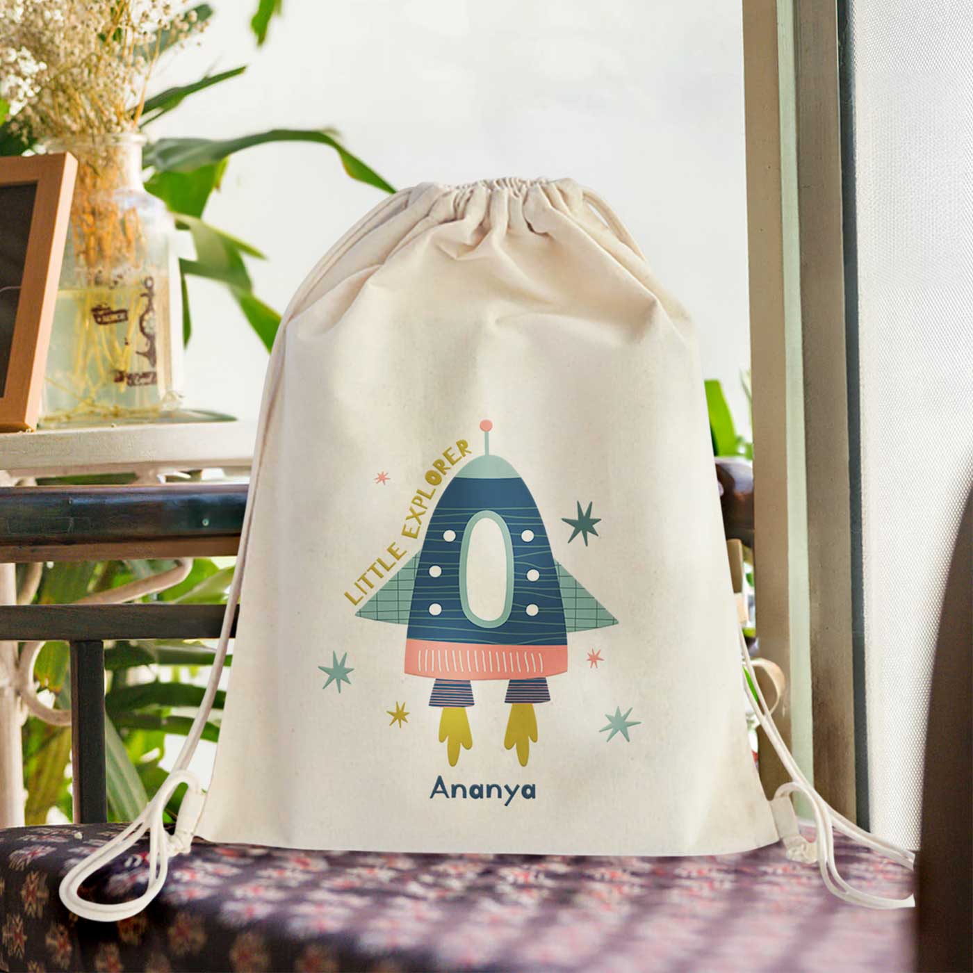 Personalize these cute and practical cotton drawstring bags for your kids, perfect for activities, travel, and everyday use.