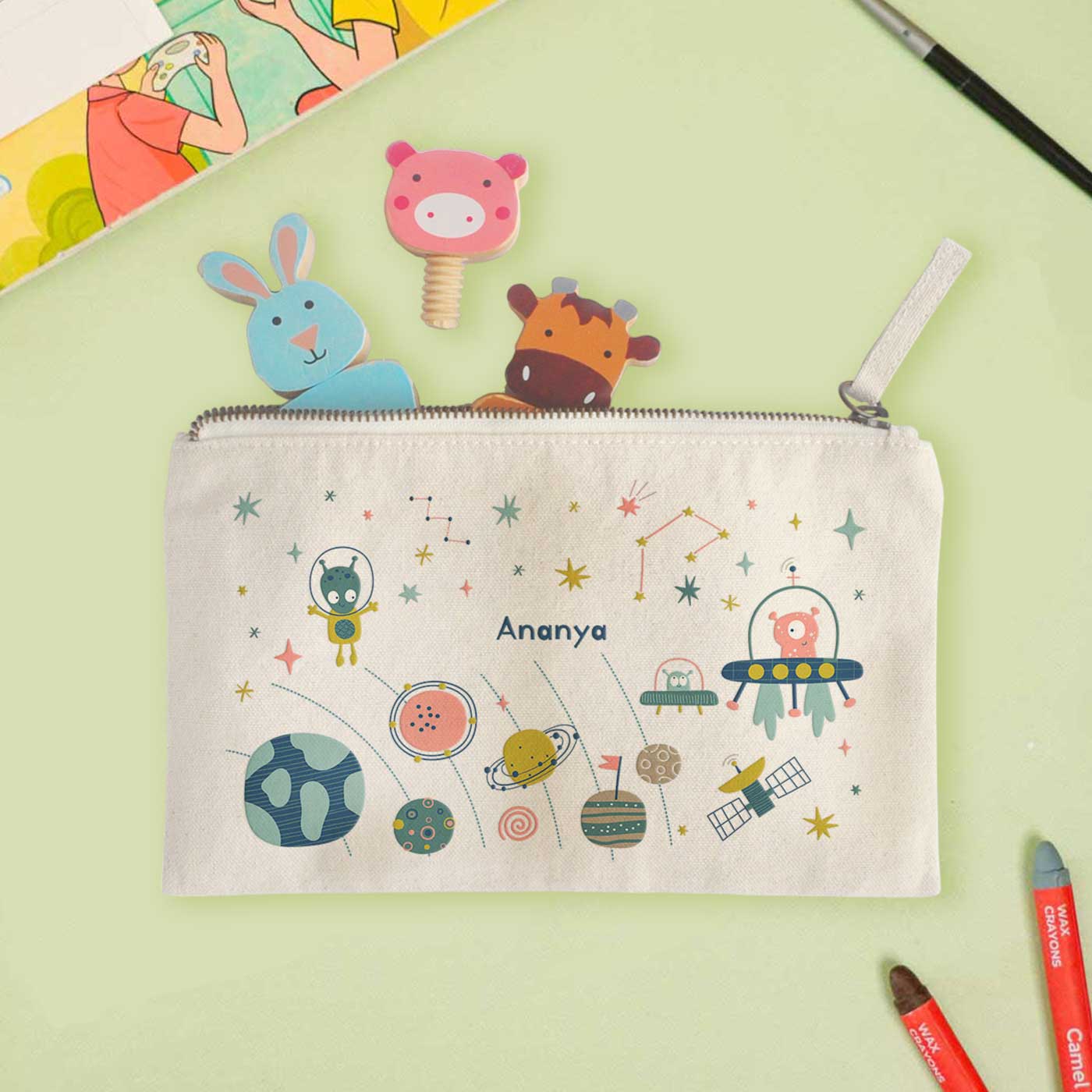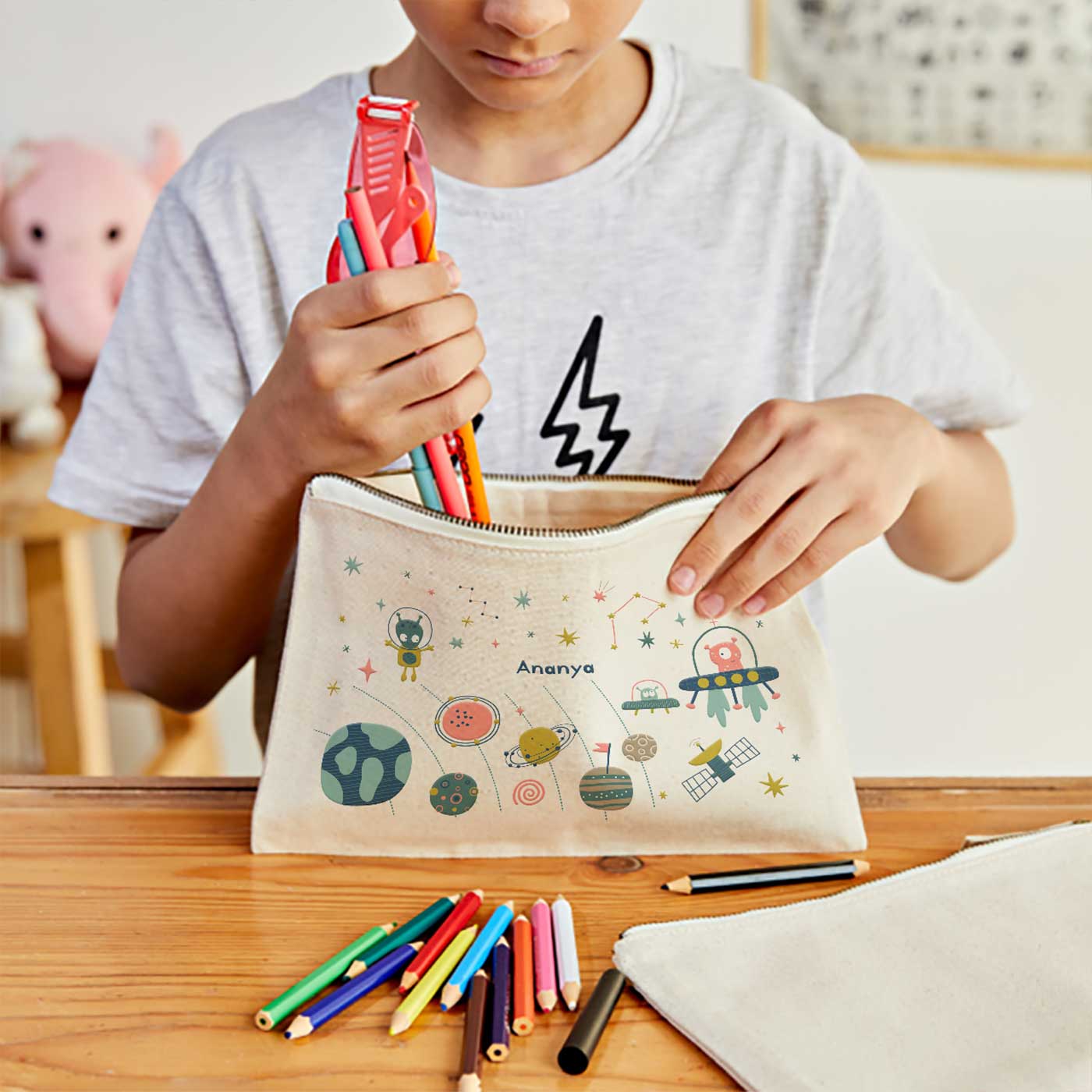Personalized Space Explorer Theme Cotton Pencil Pouch