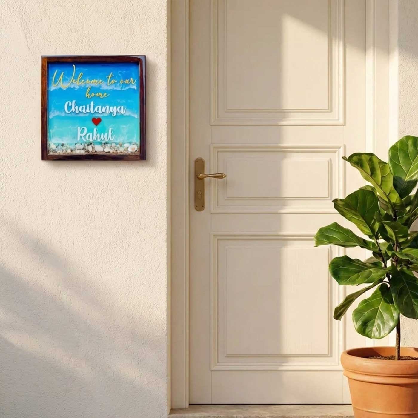 • Enhance your entryway with this handcrafted resin name plate set in a sturdy wooden frame.