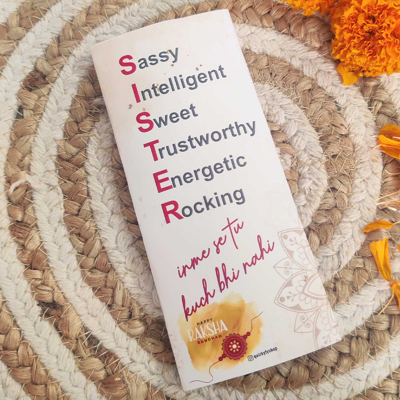 - It includes a photo-ready plaque, a ceramic mug, and a rakhi with quirky charm.