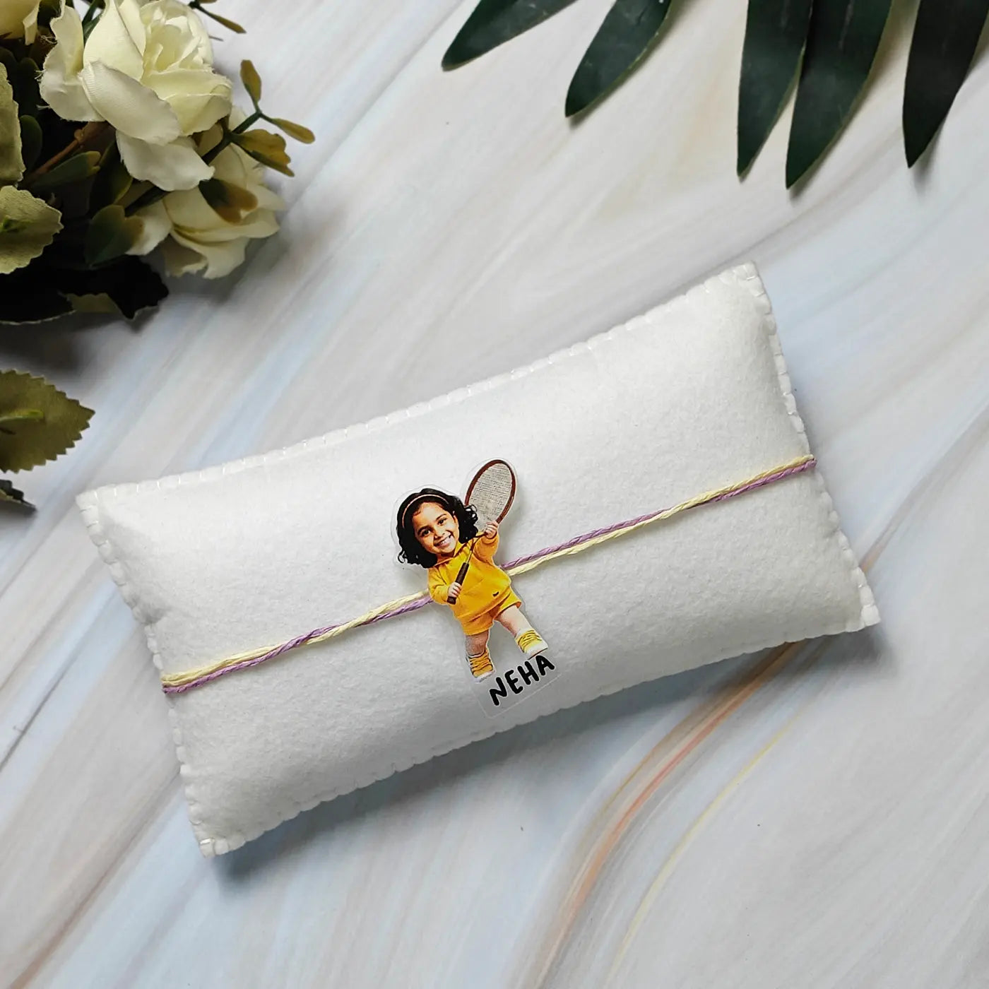 Photo Personalized Reusable Caricature Badminton Theme Acrylic Kids Rakhi