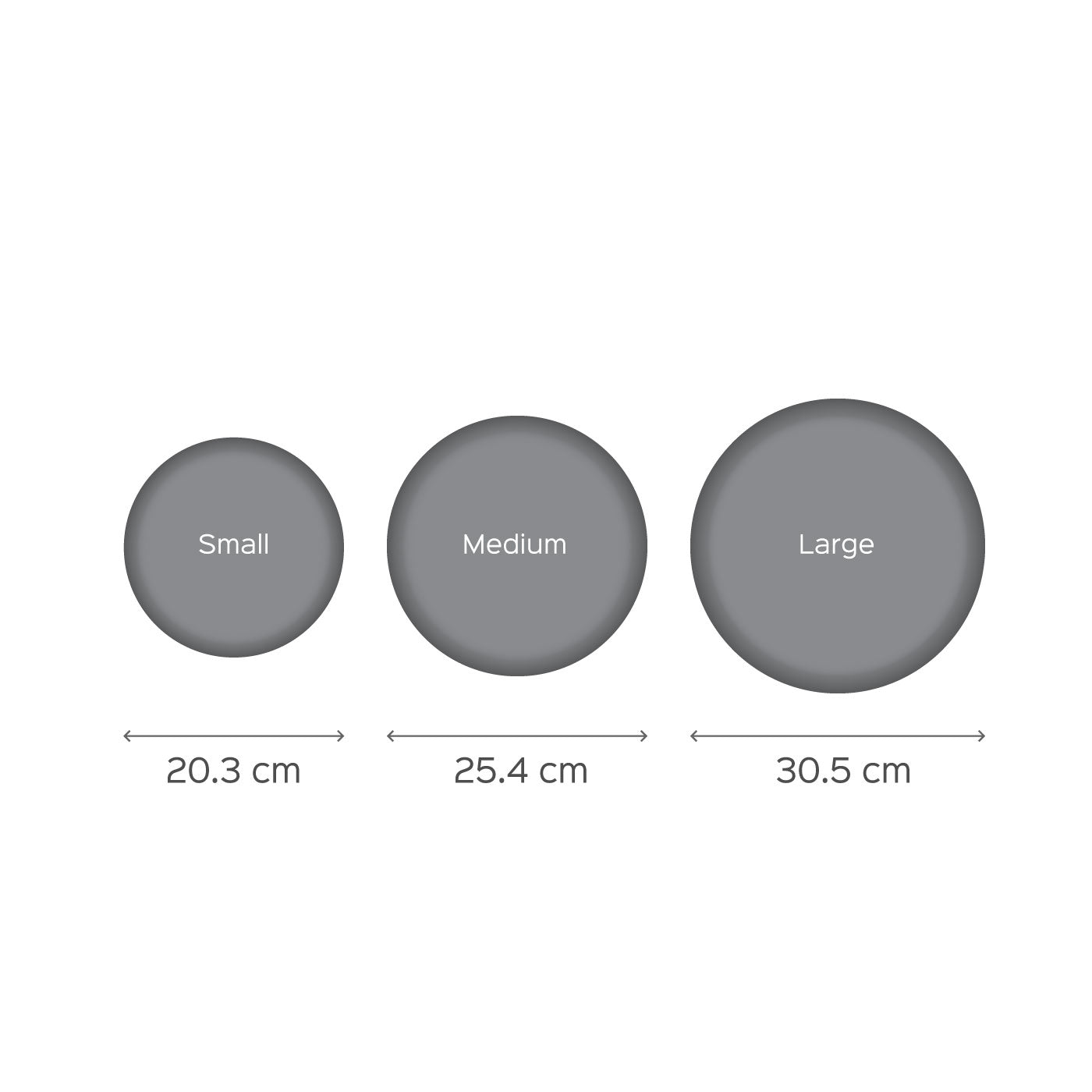 - Dimensions: Small - 8" (dia), Medium - 10" (dia), Large - 12" (dia)