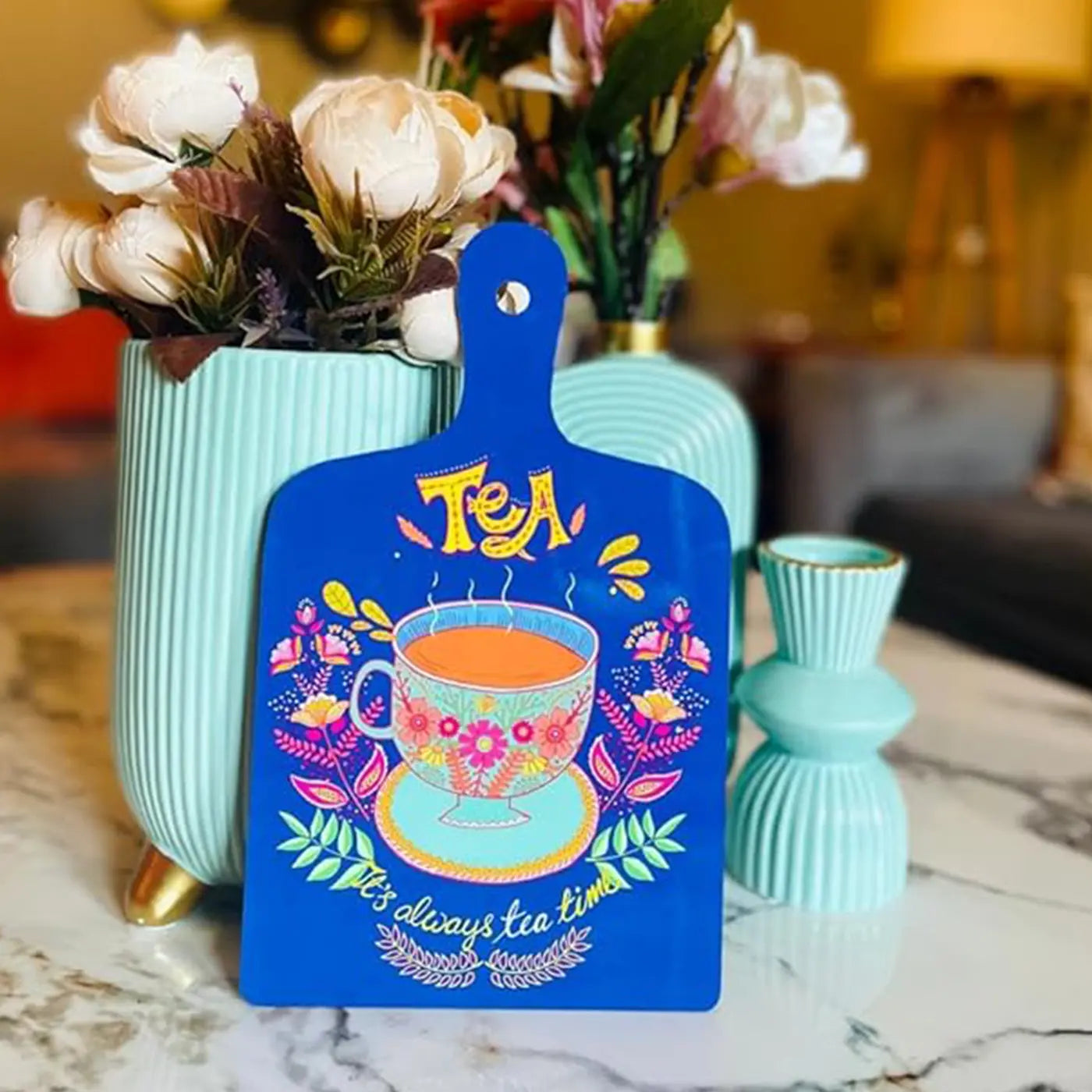 - Bring daily joy to your space with this floral tea-themed wall decor, perfect for chai lovers.