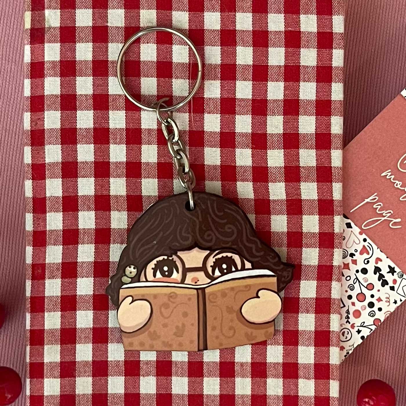 - Made from durable MDF wood, this Book Worm Girl keychain is crafted for everyday functionality.
