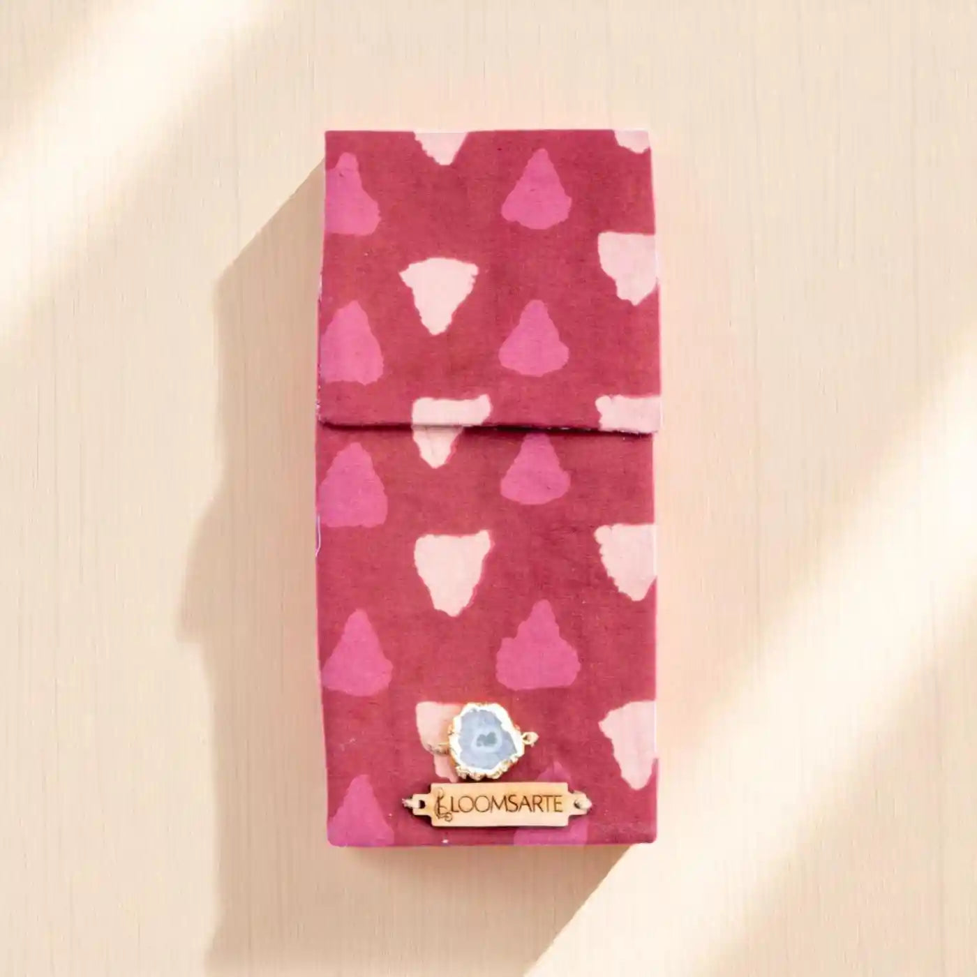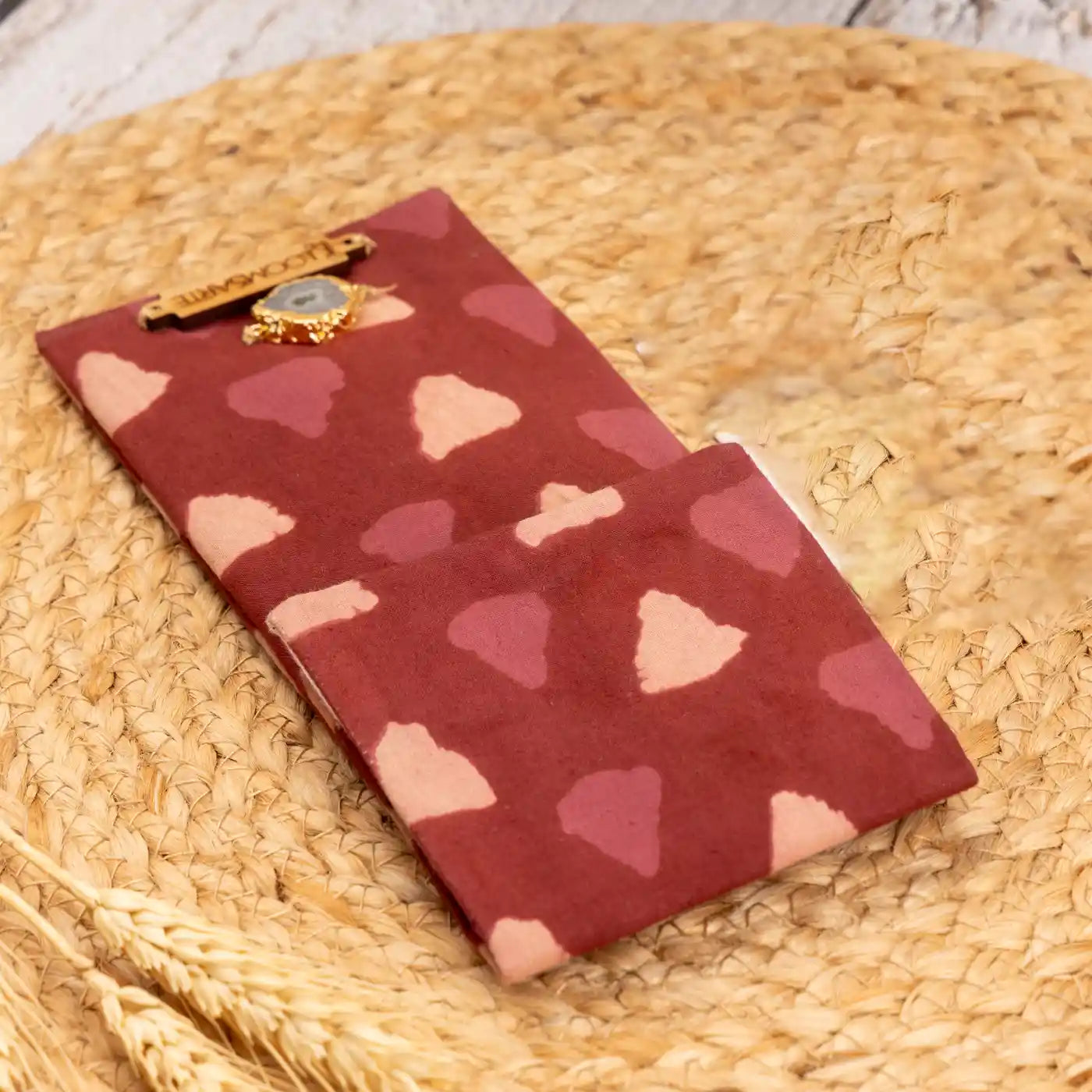 Red Bagru Multipurpose Cotton Ecofriendly Pen Holder With Agate Accent