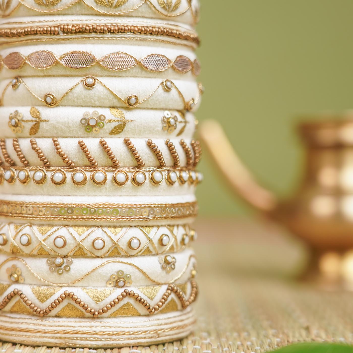 • These bangles are delicately wrapped in soft off-white cotton threads.
