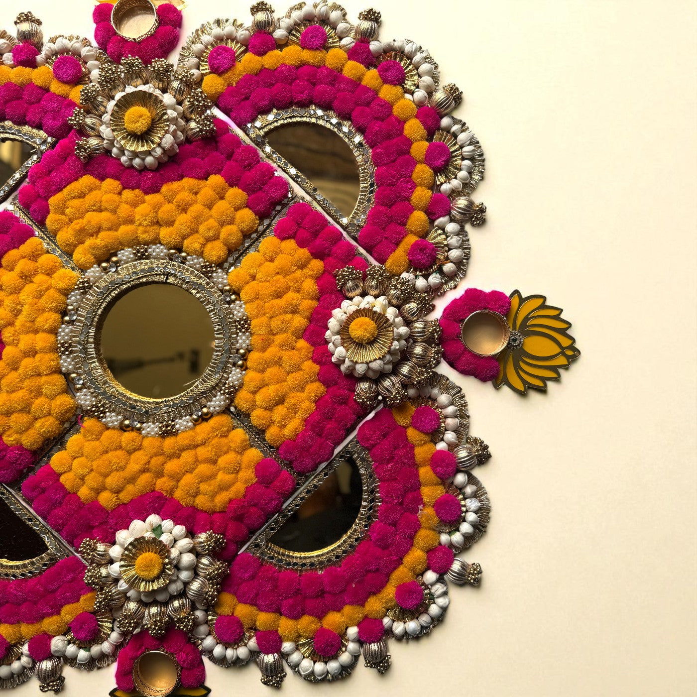 Reusable Pink & Yellow Floral Rangoli | Set Of 13