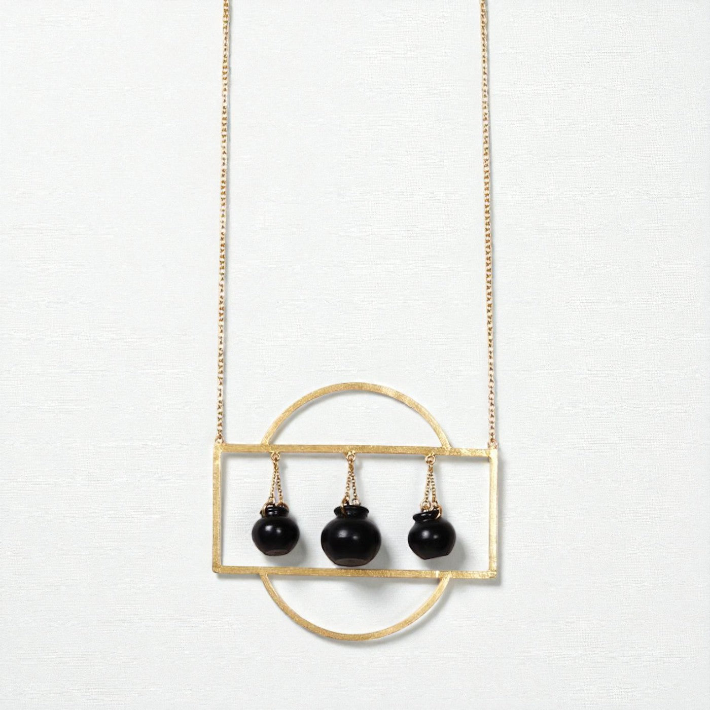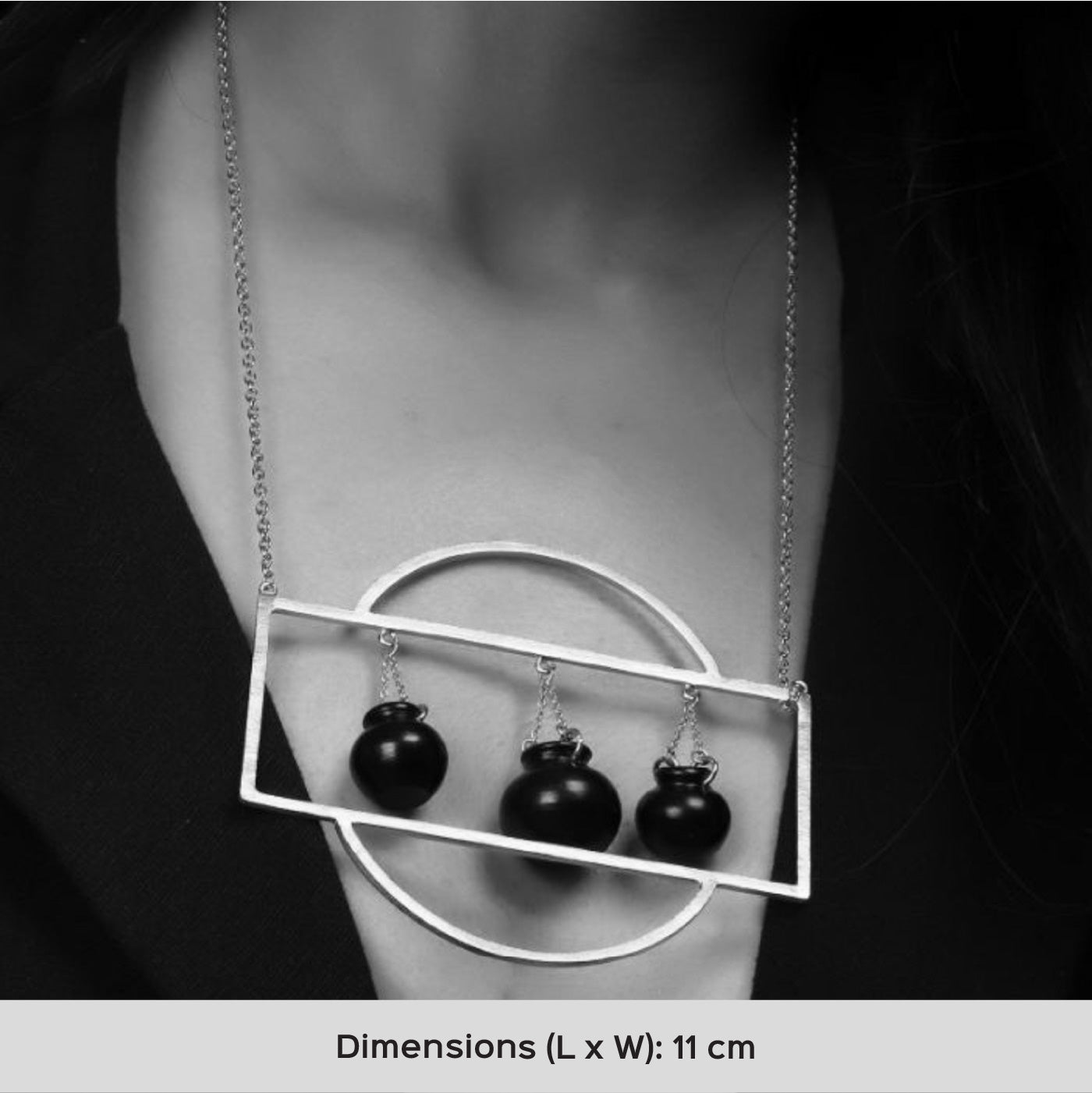 - Its pot-inspired pendant, delicately sculpted in terracotta and finished with 22K gold plating, captures the rustic charm of traditional handi vessels in a modern, wearable form.