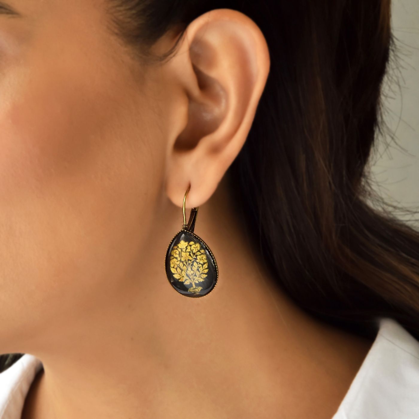 - These earrings reflect the refined artistry found on the black painted door panels of Tipu Sultan’s summer palace.