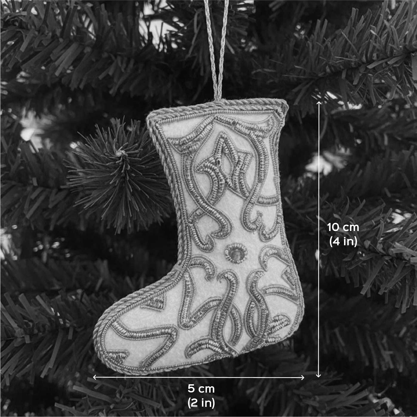 White And Gold Cotton Stocking Premium Zardozi Ornament