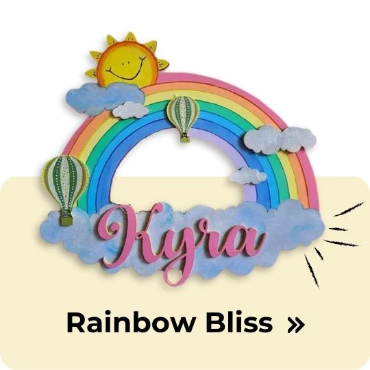 "I was determined to create a playful and colorful playroom for my daughter. I decided to use the Rainbow MDF nameboard as a focal point and styled the rest of the room around it. Ella''s face lit up with excitement when she saw this!"