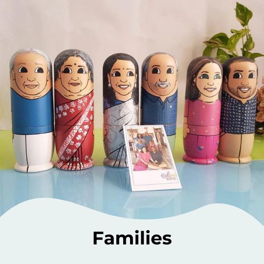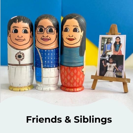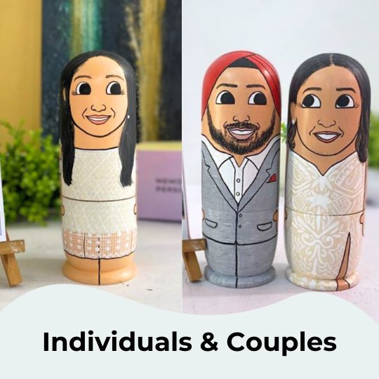 To customize your doll set with photos, simply provide the artist with the pictures you want to be painted on the dolls. You can add photos by clicking on "Customize Now".