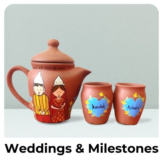 Her first creations were quirky mugs with regional couples that quickly captured the hearts of many. Inspired by customer feedback and requests, Shrutika reimagined her collection, adding personalized designs of mugs, tea sets & tealight holders that celebrated special memories.