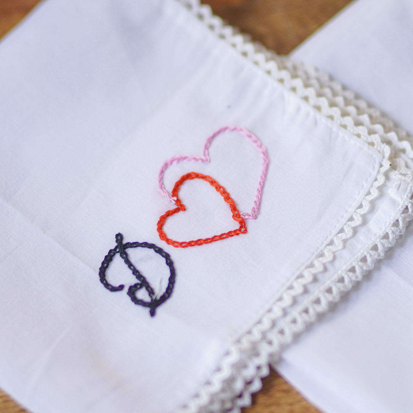 2 Pc | Personalized Hand Embroidered Double Heart Cotton Handkerchief