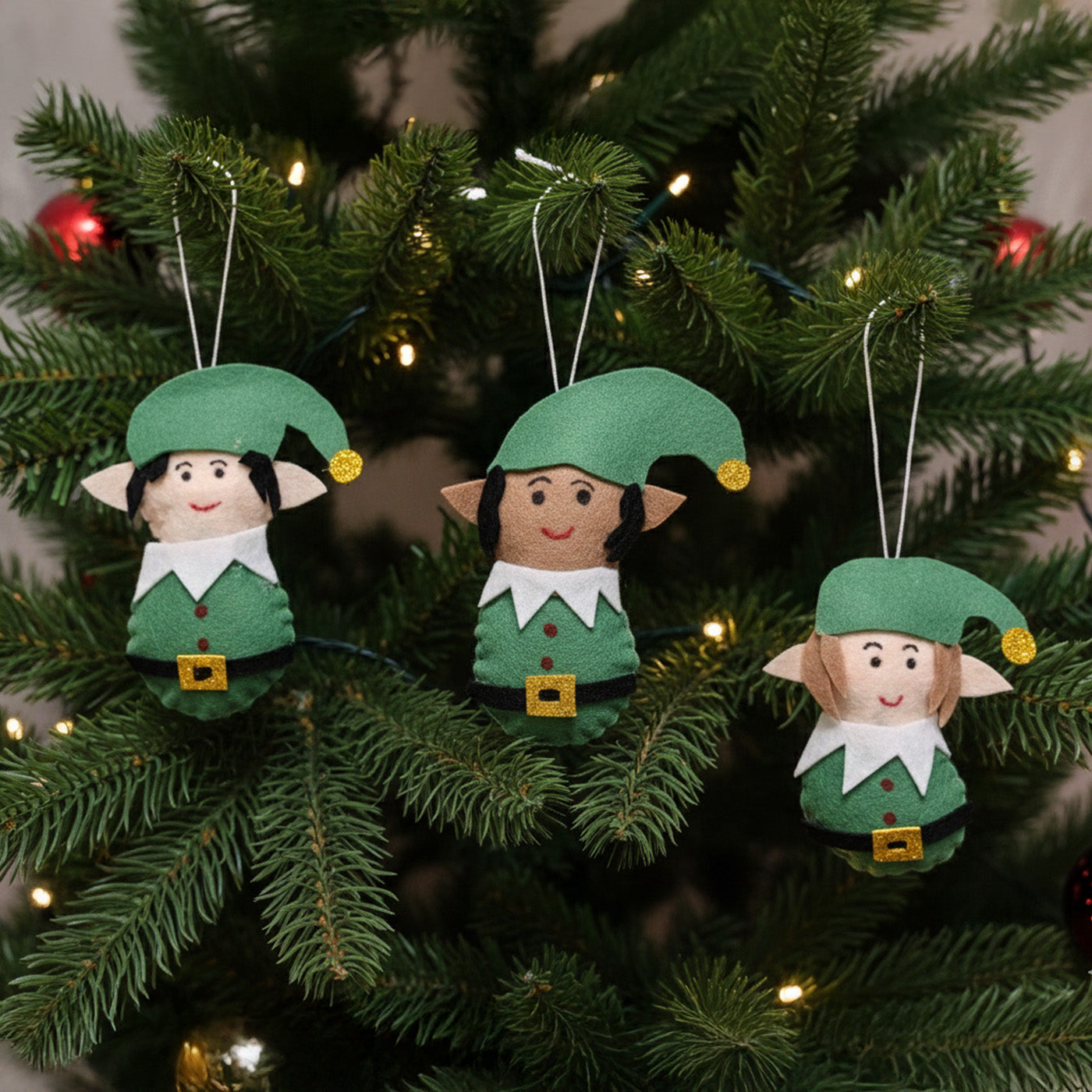3 Pc | Handmade Elves Felt Ornaments For Christmas Tree Decoration