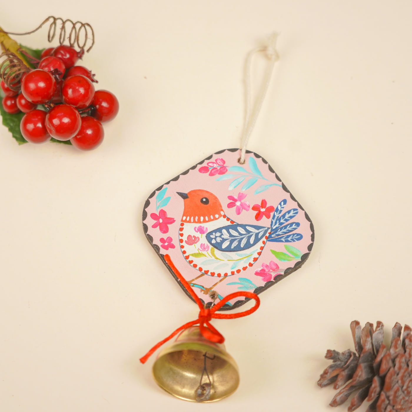 - A golden metal bell and bright red bow adorn each ornament, adding color and soft, melodic chimes.