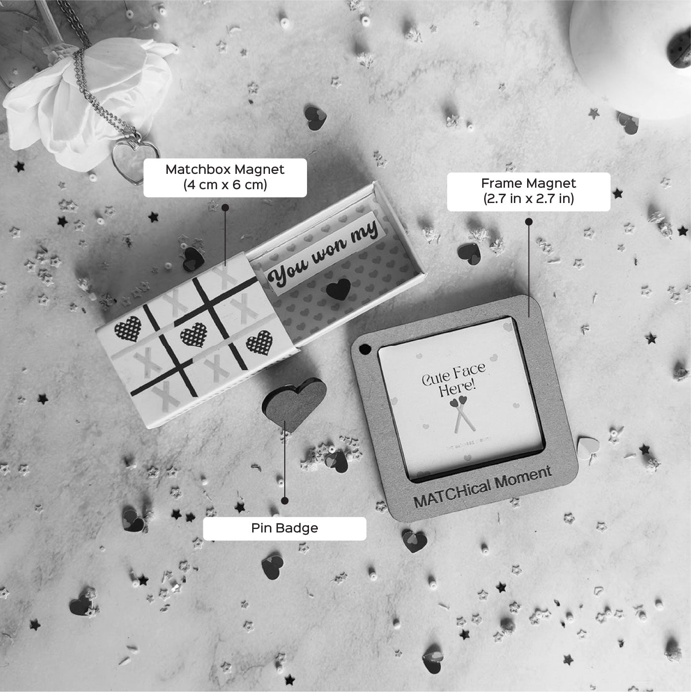 - It includes a personalized photo frame magnet, an XOXO Hugs mini Love Box magnet, and a cute pin badge, making it a charming combo for your space.