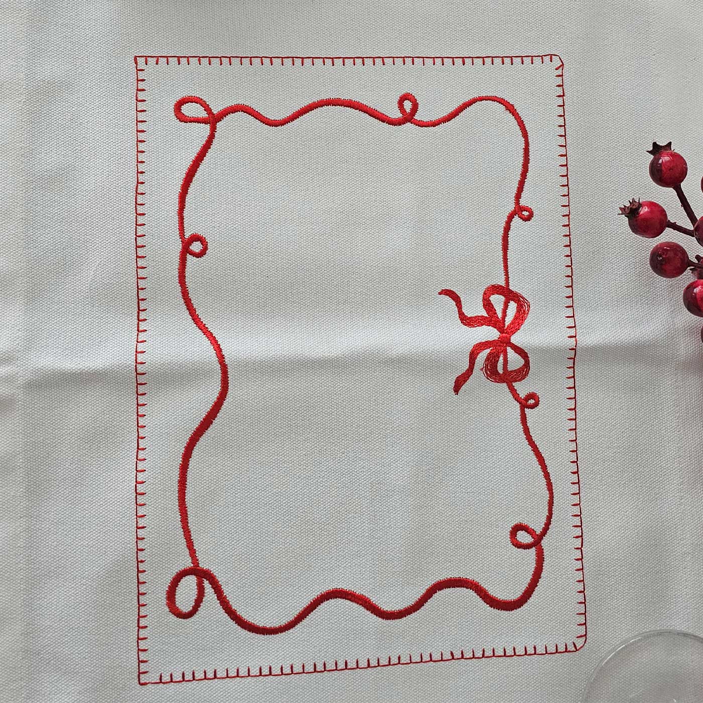 - Bring understated elegance to your festive table with this set of four handcrafted cotton canvas table mats, featuring delicate “Wrapped In Love” embroidery.