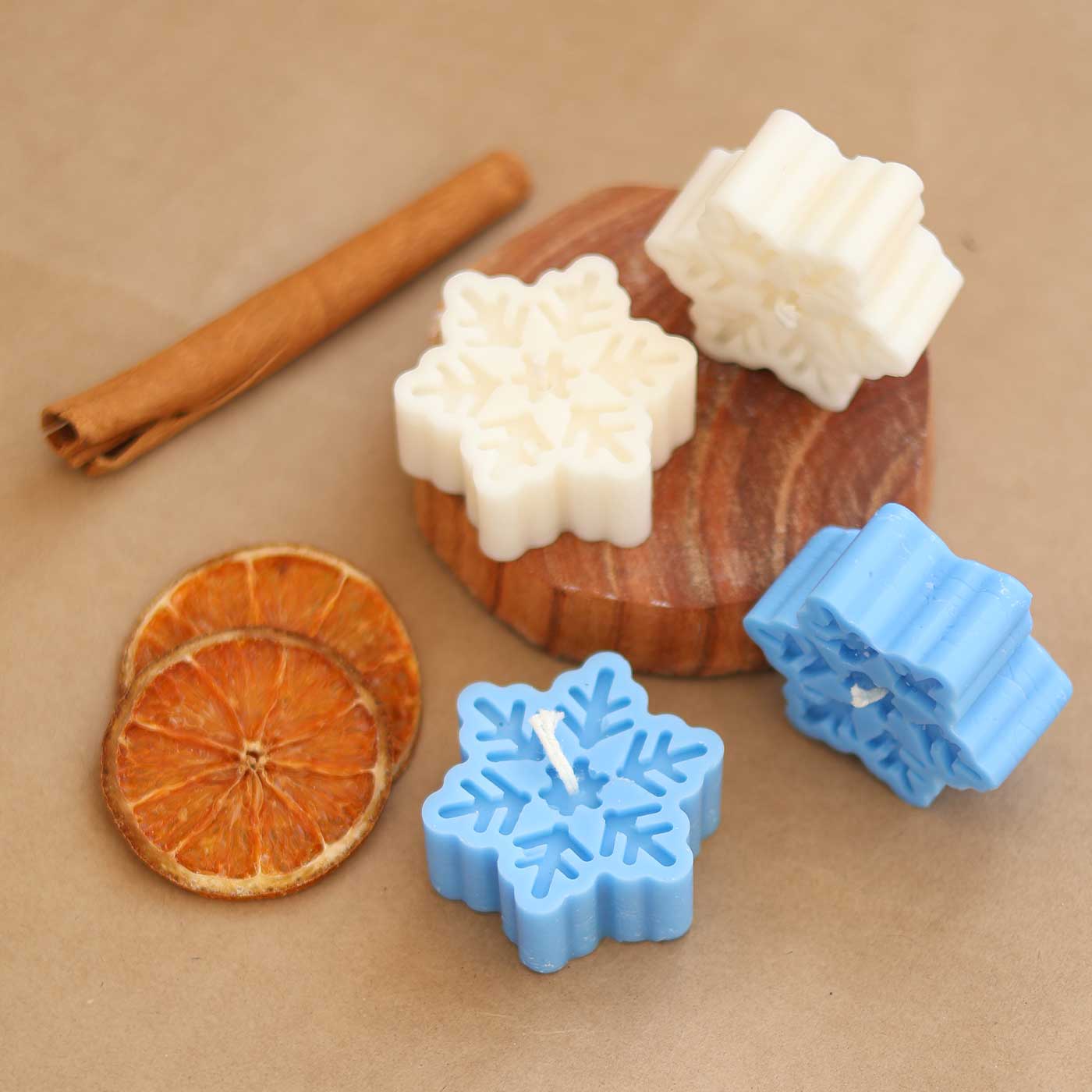 - Bring winter magic indoors with this handcrafted set of four snowflake-shaped soy candles.
