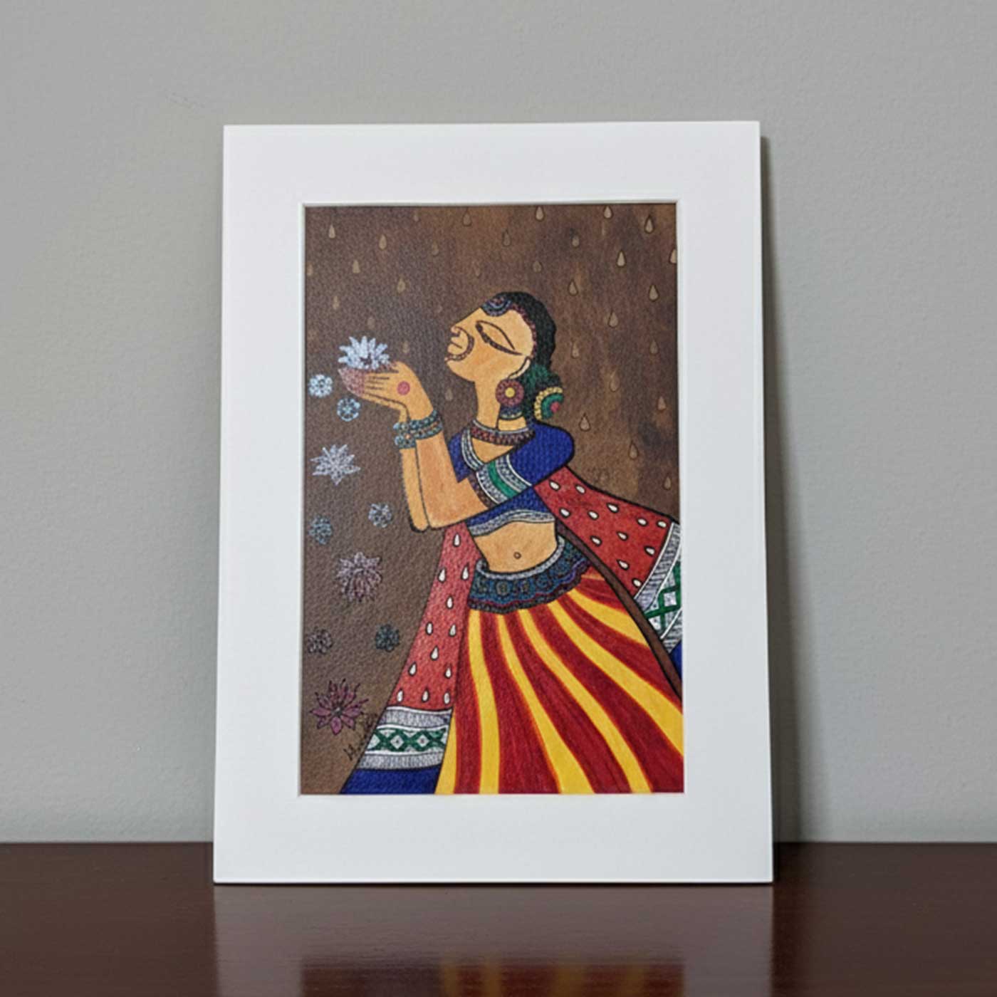 - Grace unfolds like a lotus in bloom in this handpainted Madhubani artwork.