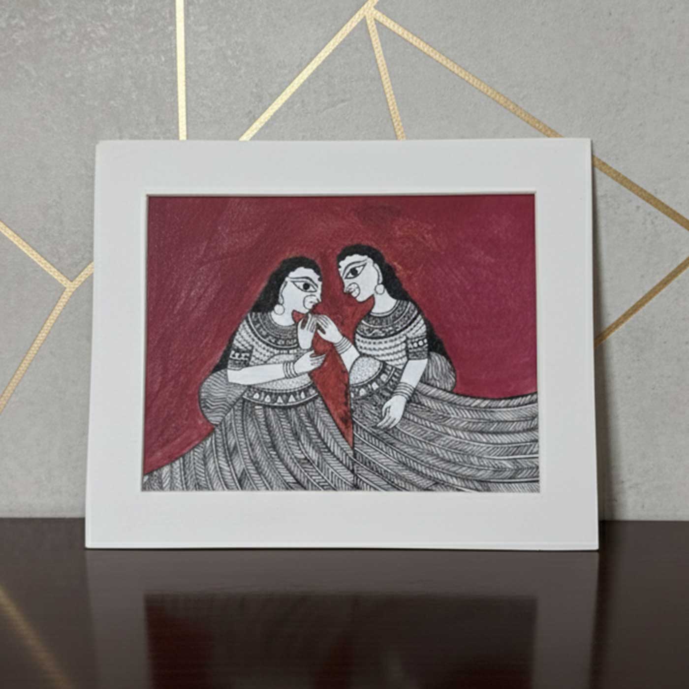 - Rendered in classic Madhubani motifs, it evokes the joyous rhythm of shared moments.
