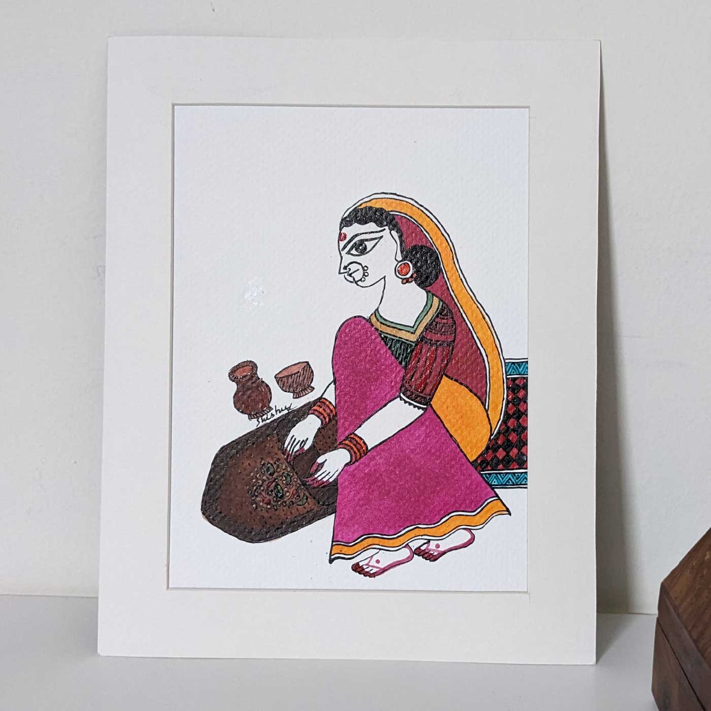 - This artwork revives the rustic charm of everyday village life through Madhubani’s lens.