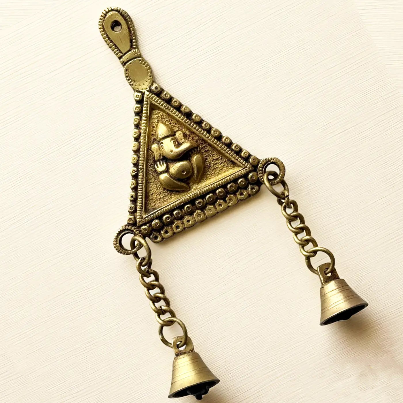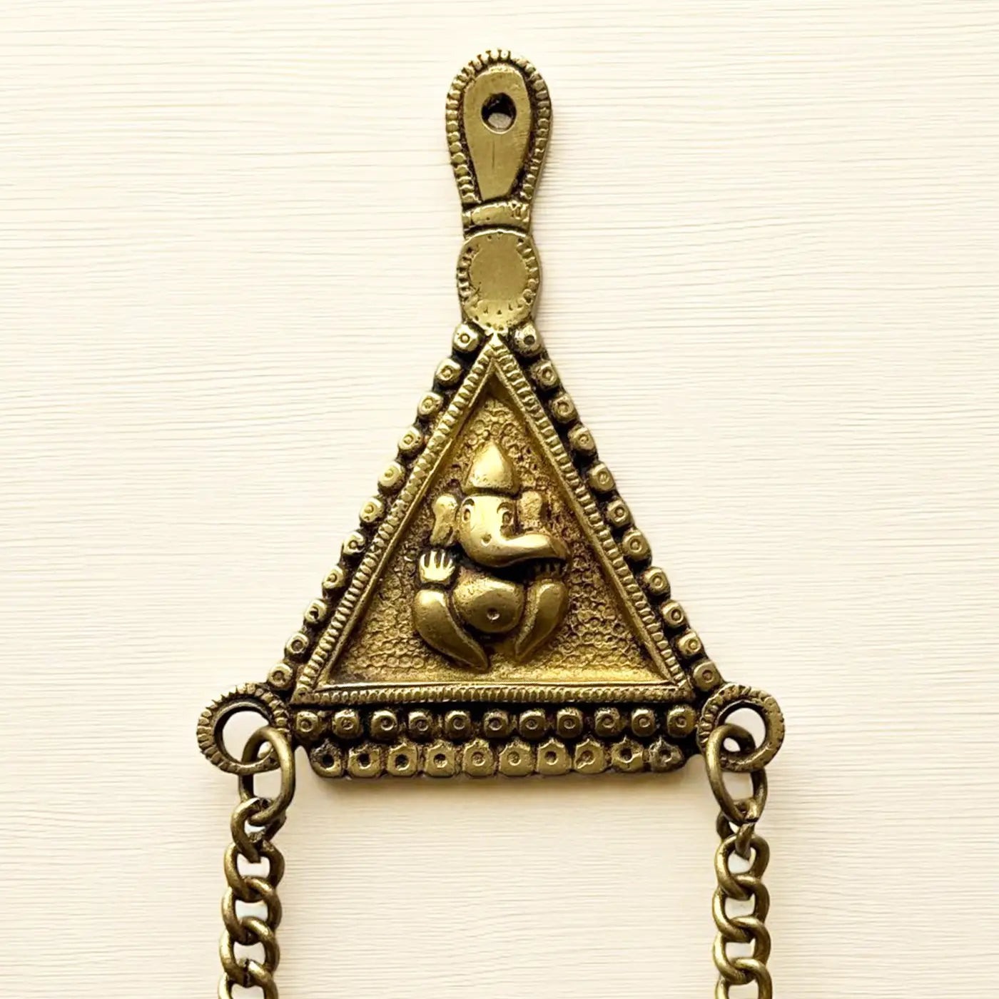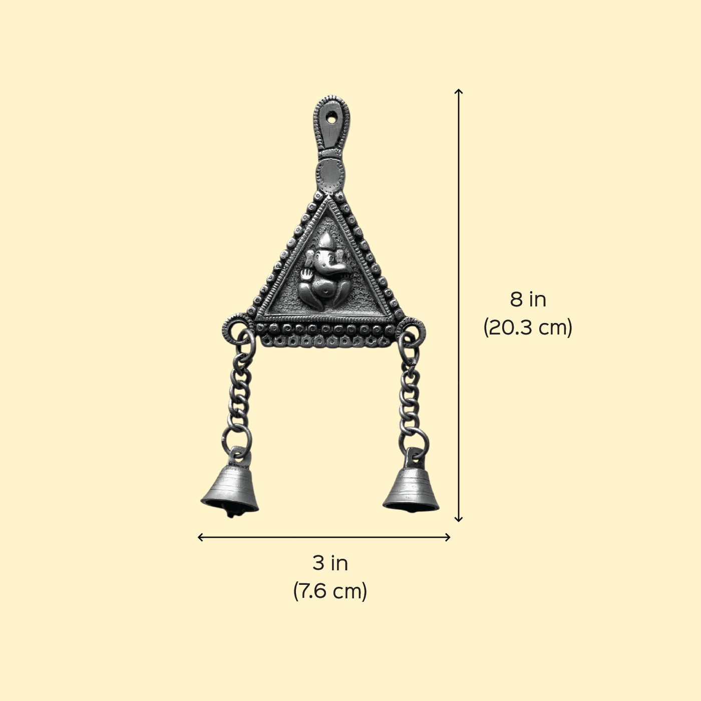 8 Inch | Antique Finish Metal Ganesha Hanging With Bells