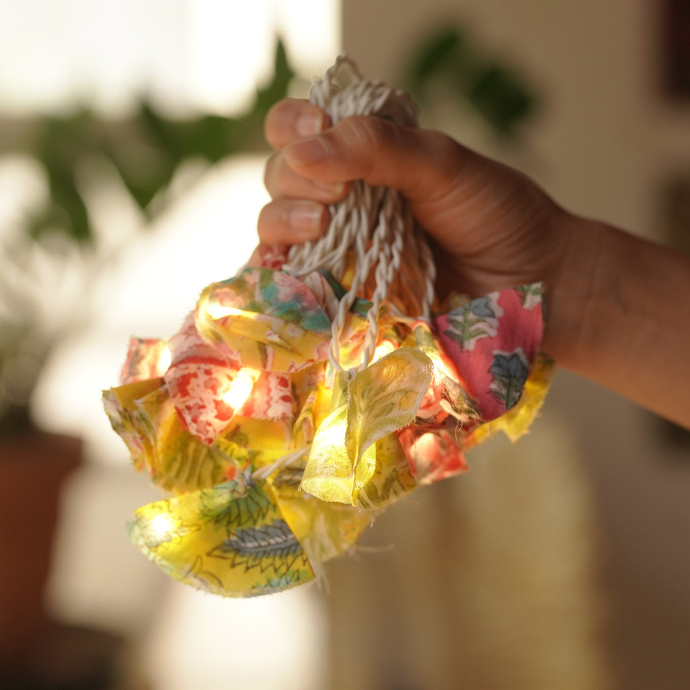 9.15m, 50 Bulbs | Handmade Assorted Block Printed Pastel Fabric LED Fa