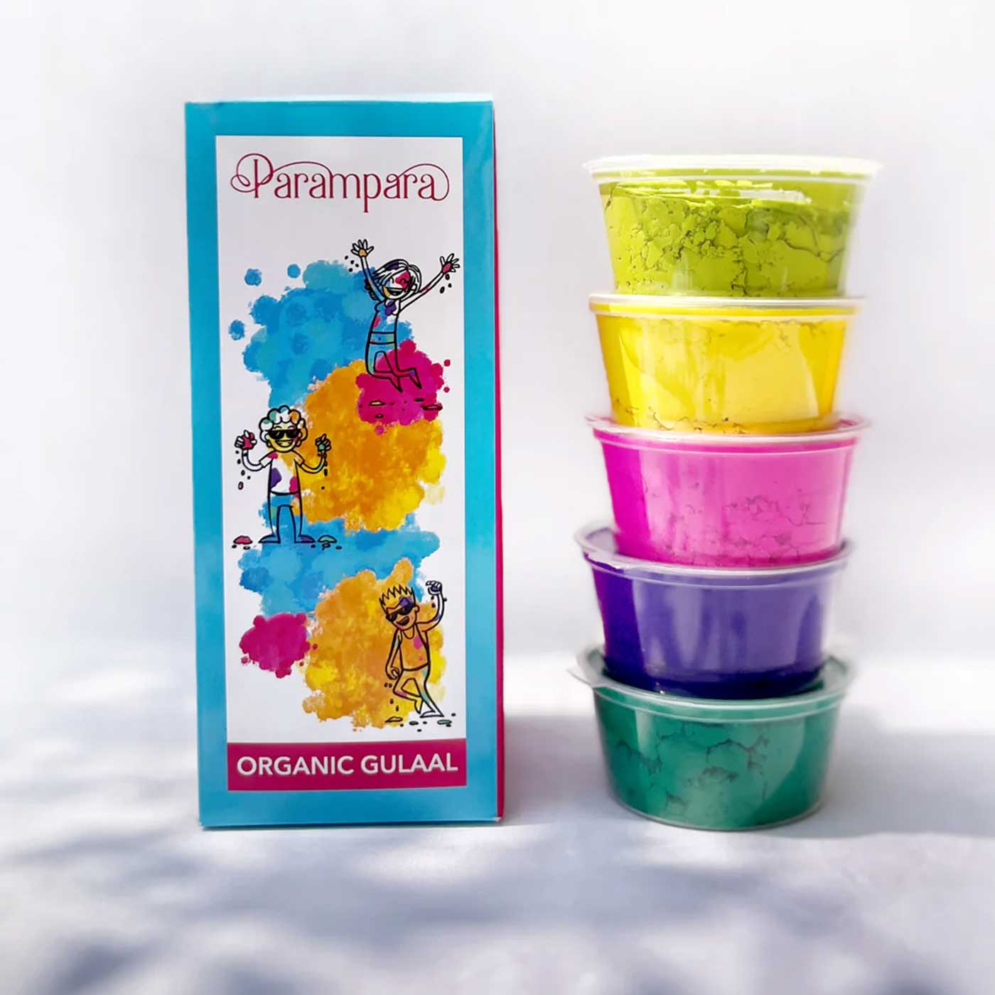 - Includes 5 organic gulaal packs (150g), made with skin-safe, natural ingredients for vibrant play.