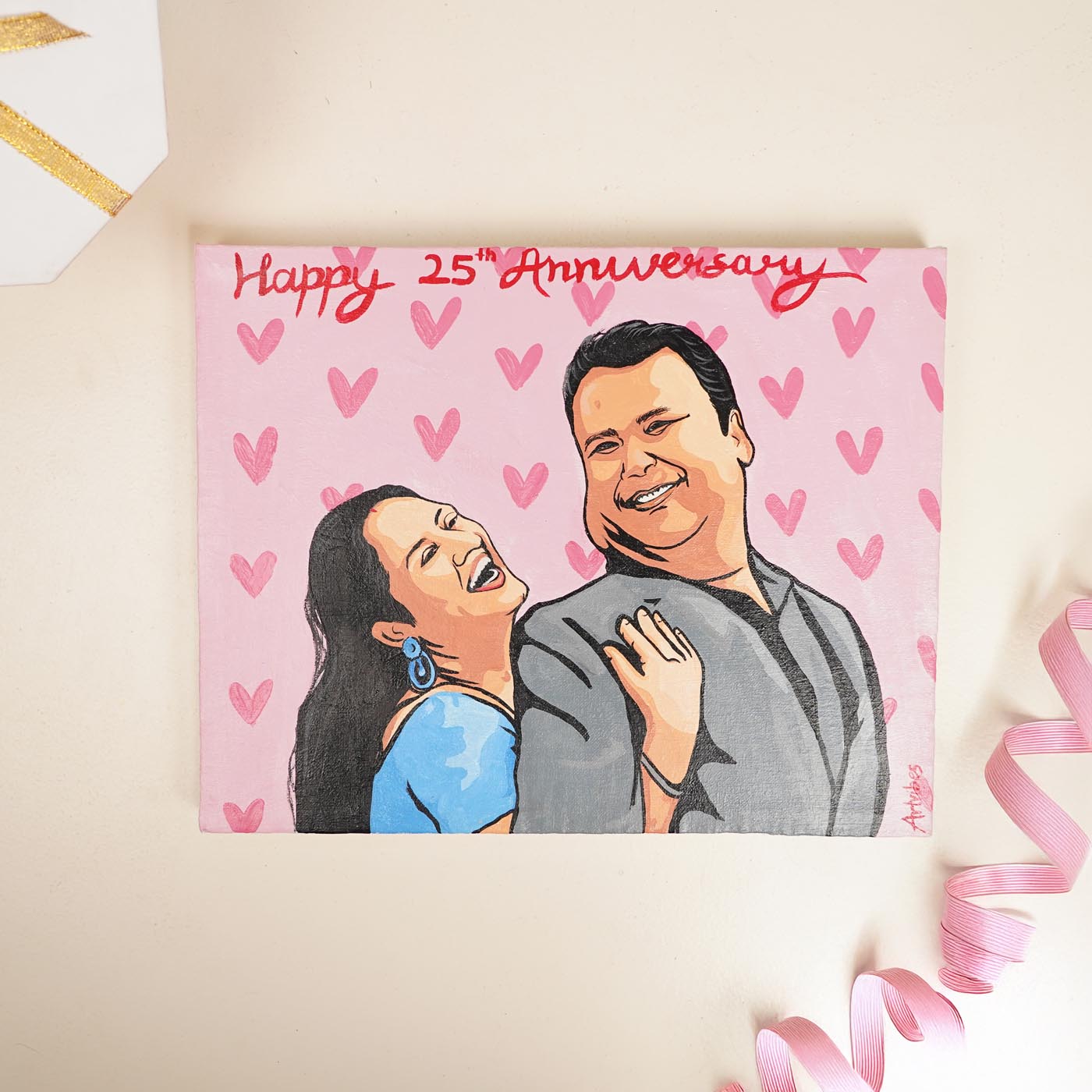 Anniversary Couple Photo Personalized Handpainted Canvas Portrait