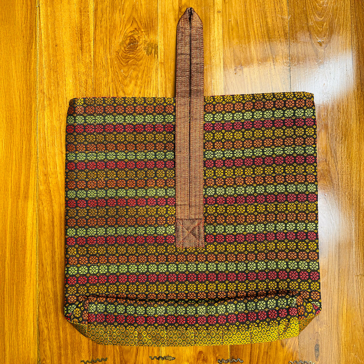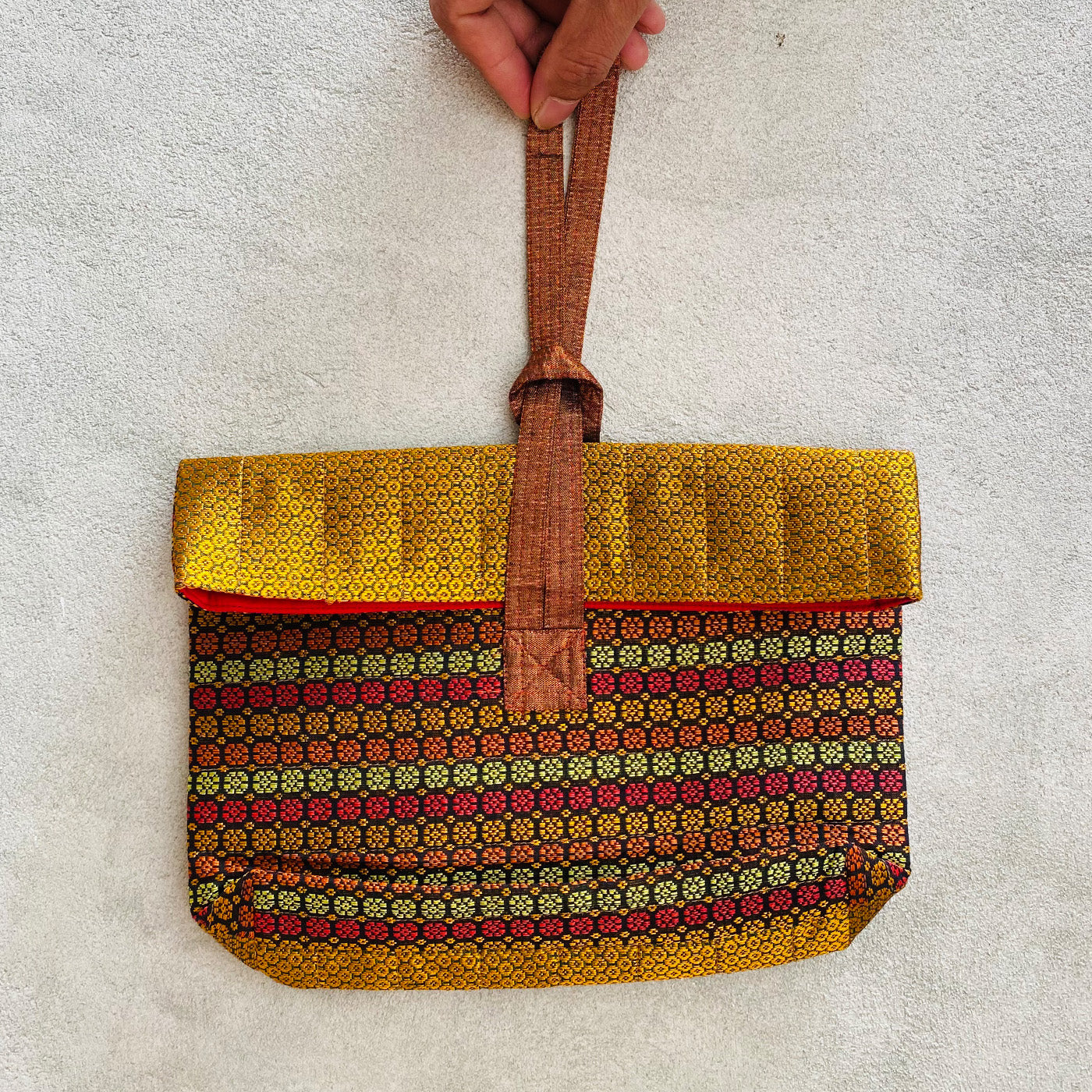 • Handwoven from richly textured Khunn fabric, this wrist purse celebrates Karnataka’s vibrant textile heritage.